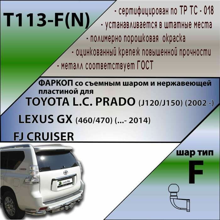 Фаркоп ТСУ для TOYOTA L.C. PRADO (J120/J150) (2002 - ...) / LEXUS GX (460/470) (...- 2014) / FJ CRUISER Лидер Плюс (Арт.T113-F) интересное: