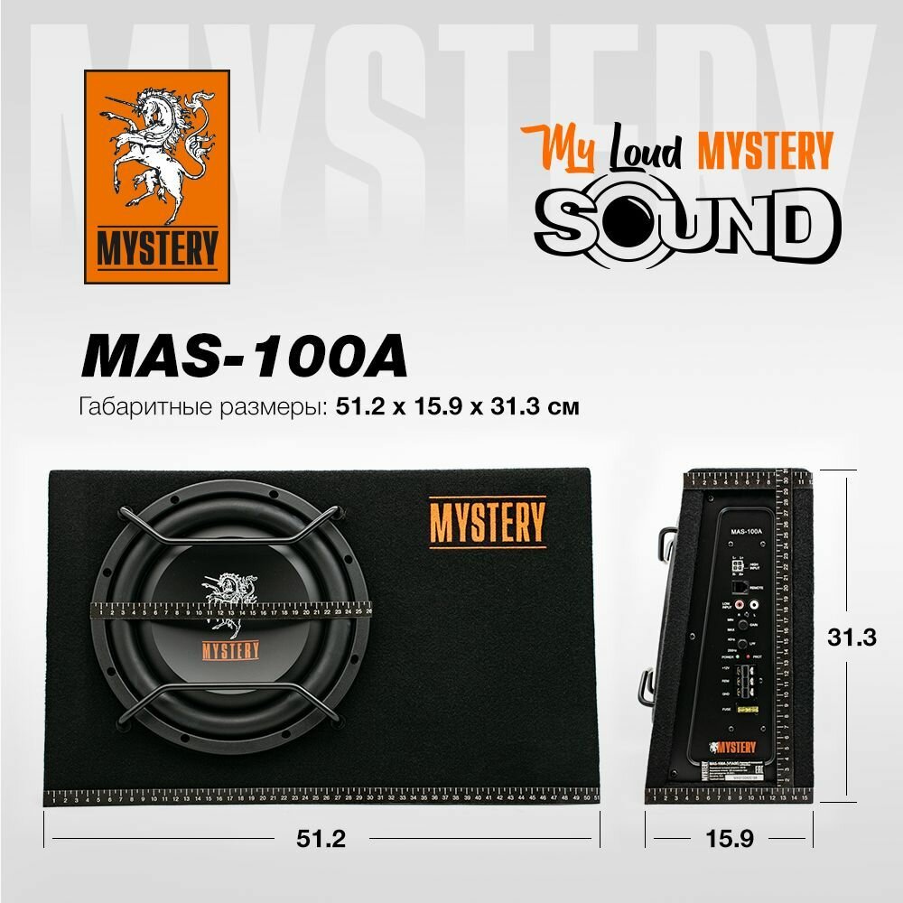 Сабвуфер MYSTERY MAS-100A 10 дюймов, c фазоинвертором, активный корпусной интересное: