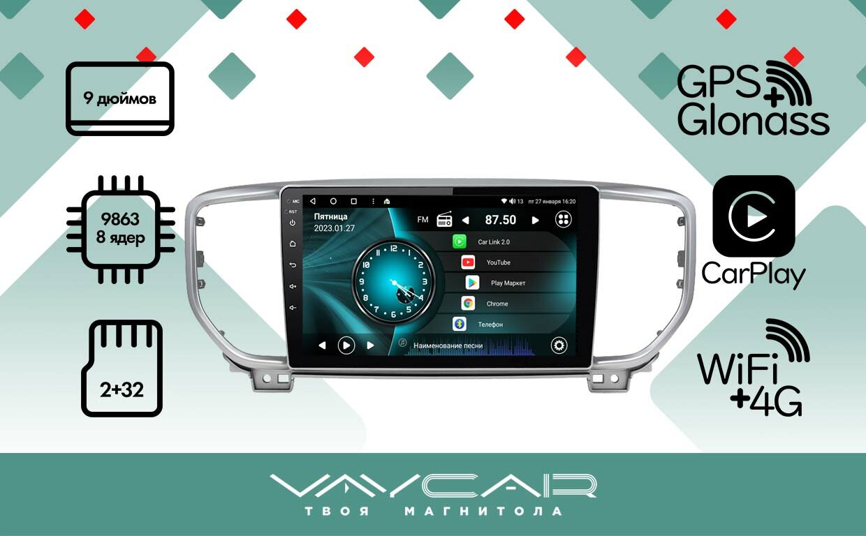Магнитола Vaycar 09V2 для KIA Sportage IV 2019+ (Андроид, 2+32, 8 ядер, WiFi, BT, 4G, GPS, QLED 9")