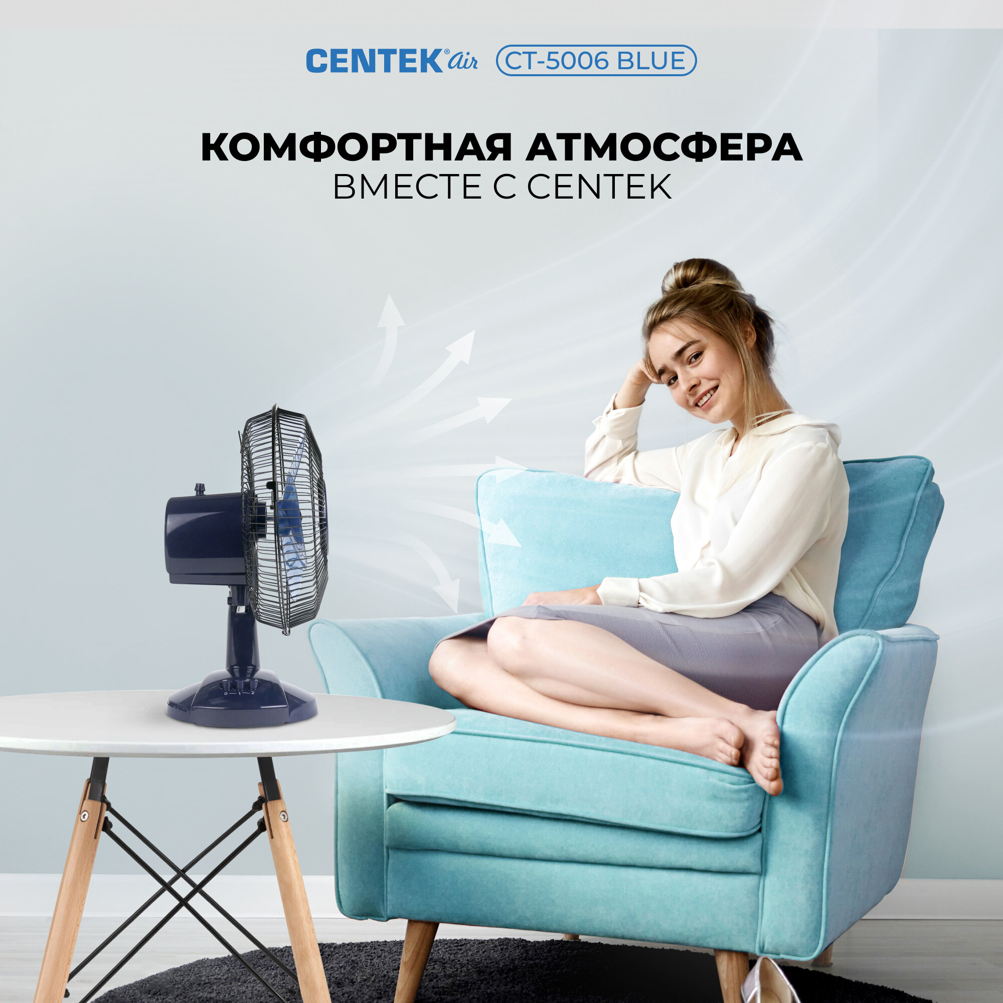Купить Вентилятор настольный CENTEK CT-5006 (голубой) 25Вт, решетка-сетка 27см, лопасти 23 см, 2 скорости