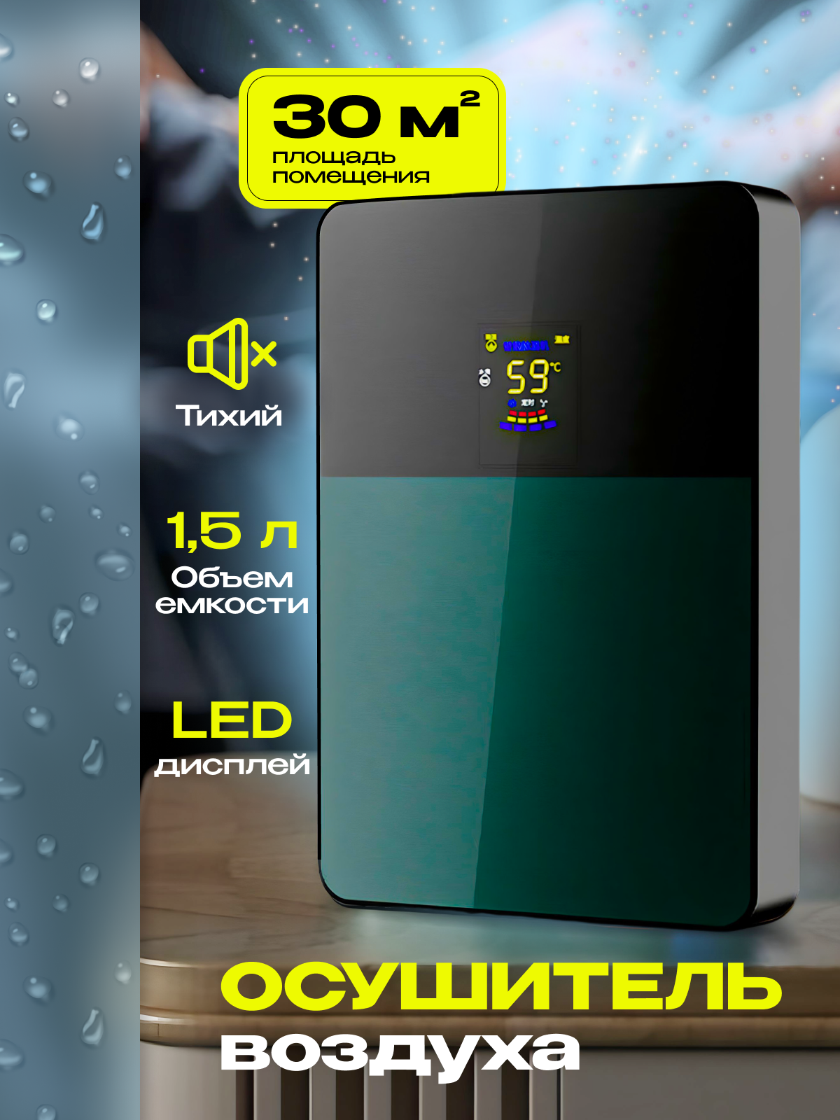 Осушитель воздуха для квартиры для дома 1,5 л 30 кв. м LED-дисплей