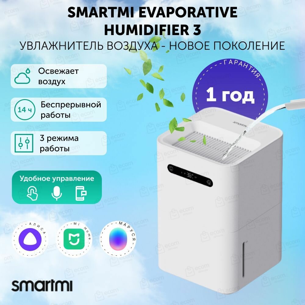 Увлажнитель воздуха Smartmi Evaporative Air Humidifier 2 RU CJXJSQ04ZM, белый, объем 4 л, умный дом MiHome