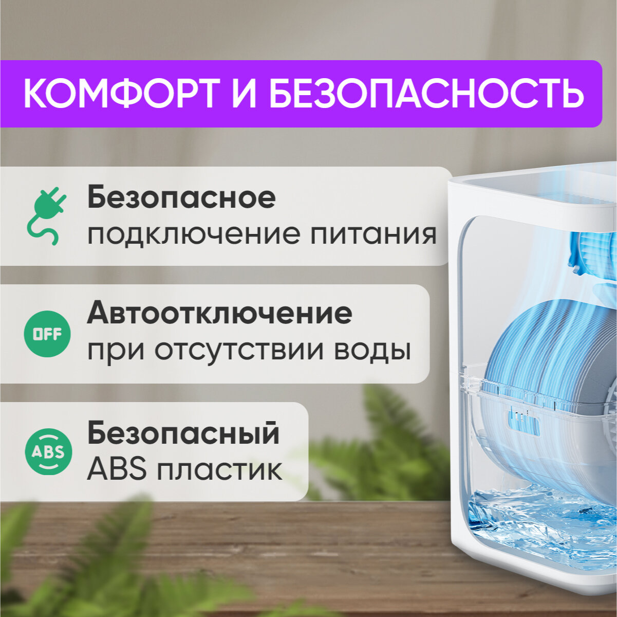 | Минусы: | Слабое увлажнение (за сутки испаряет около 8 литров воды)