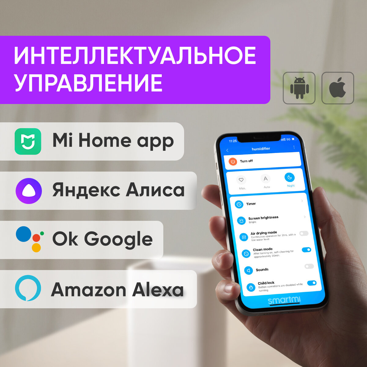 Увлажнитель воздуха Smartmi Evaporative Humidifier 2 RU / умный дом / дисплей / объем 4 л / верхний залив воды