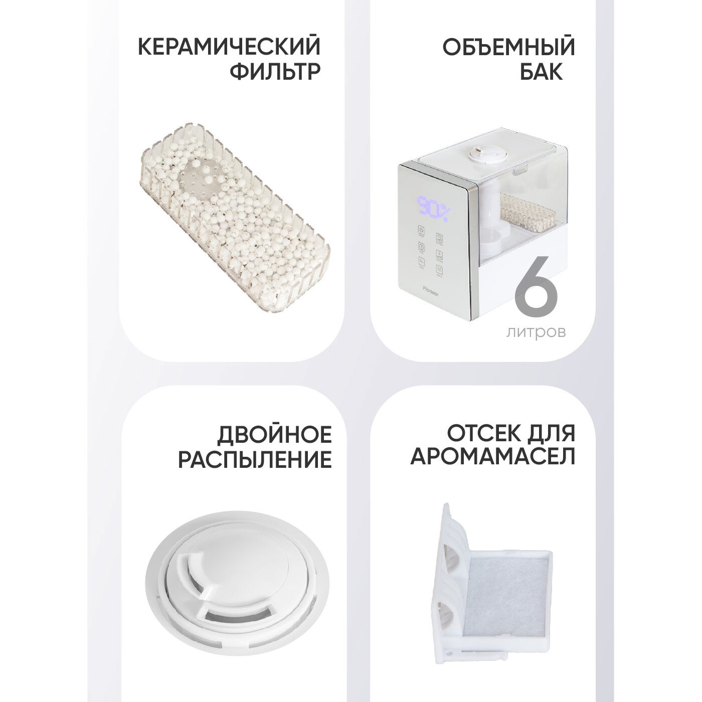 Ультразвуковой увлажнитель воздуха Pioneer Platinum 6 л, c сенсорной панелью и аромакапсулой