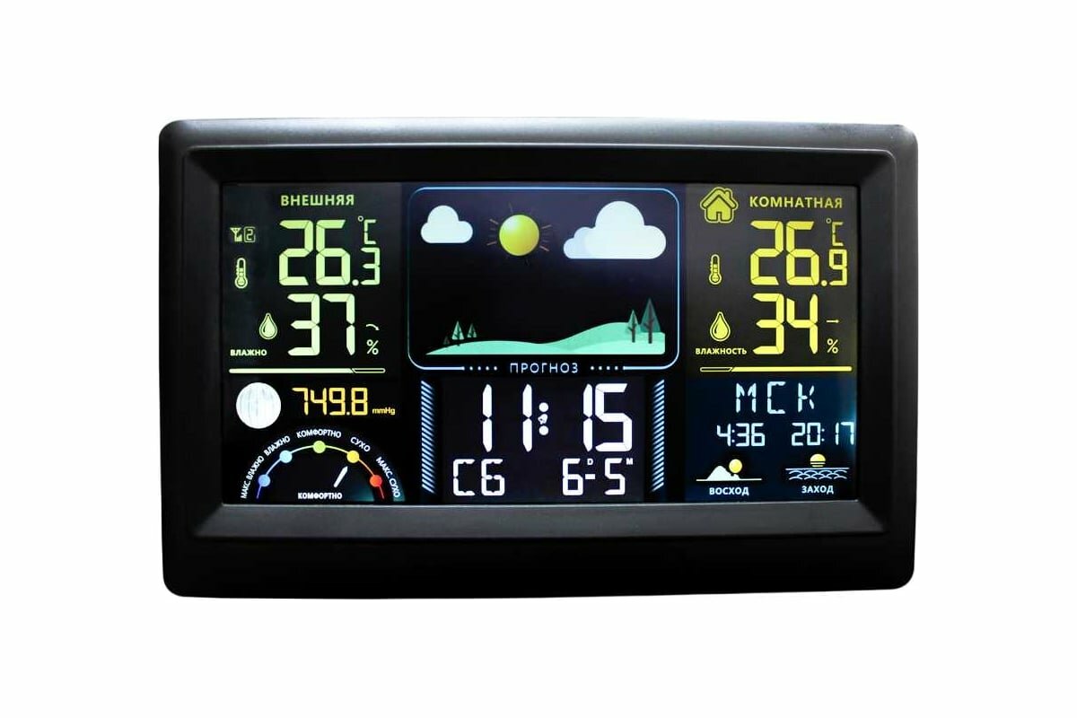Метеостанция BVItech BV-677, черная, с беспроводным датчиком