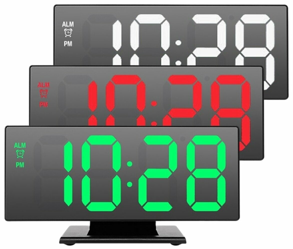Электронные настольные часы DS-3618L/ зеркальный дисплей, будильник, термометр, календарь, подсветка