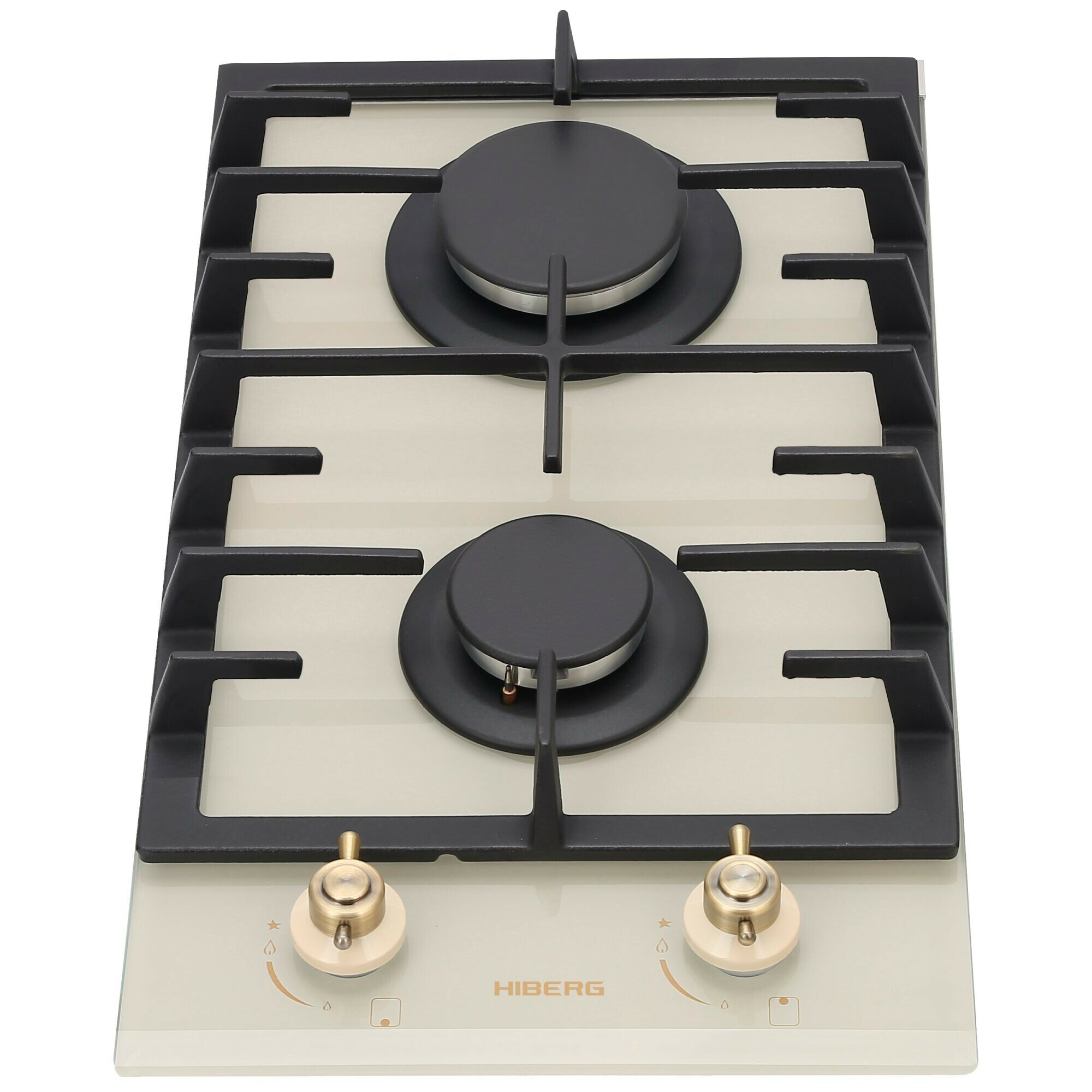 Газовая варочная поверхность HIBERG VM 3022 RY, 2 конфорки, электророзжиг, газ-контроль, бежевый ретро