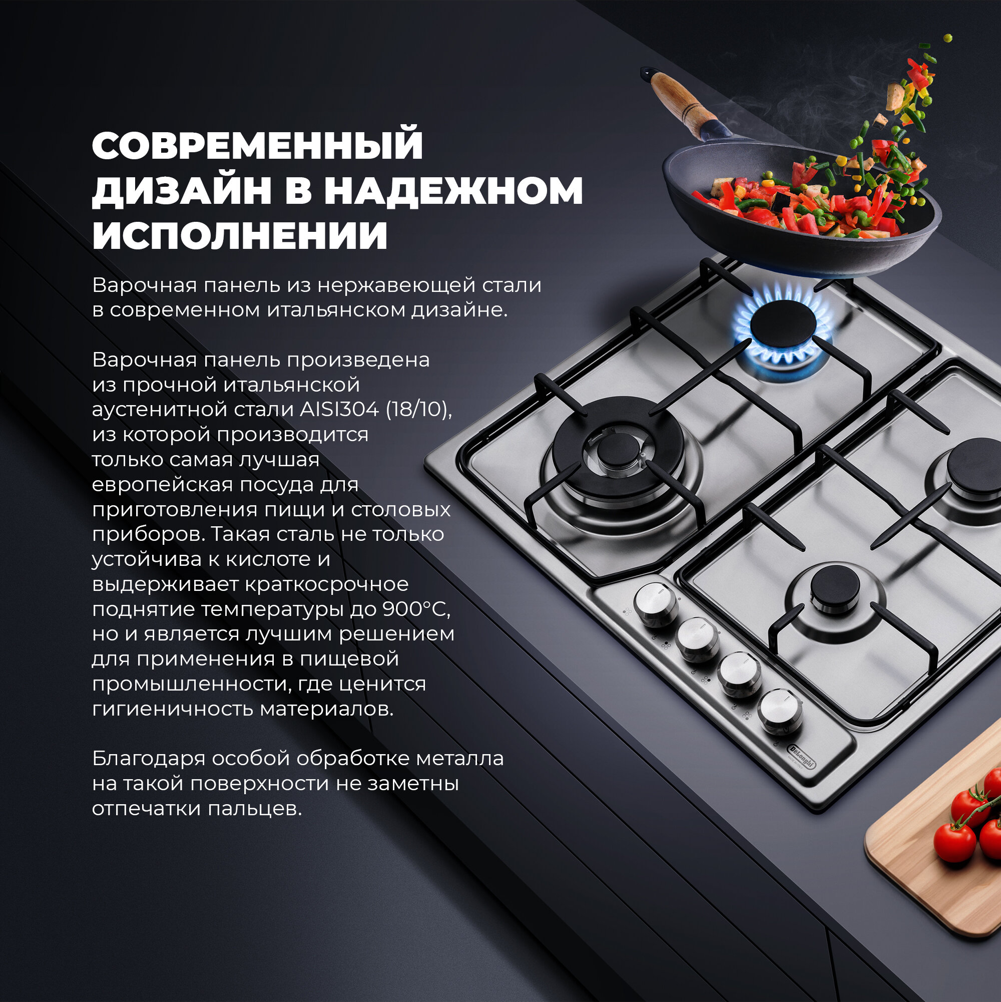 Газовая варочная панель на четыре конфорки Delonghi SLF 460 LX RUS нержавеющая сталь
