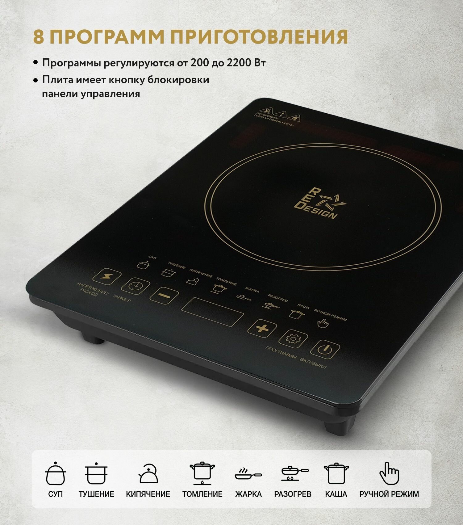 Плита индукционная Redesign настольная 2200 Вт интересное: