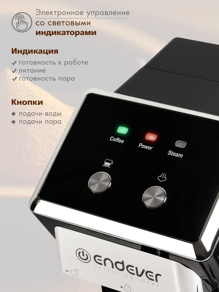 Кофеварка рожковая Endever Costa-1085 / 1200 Вт / 15 Бар / 1,5л
