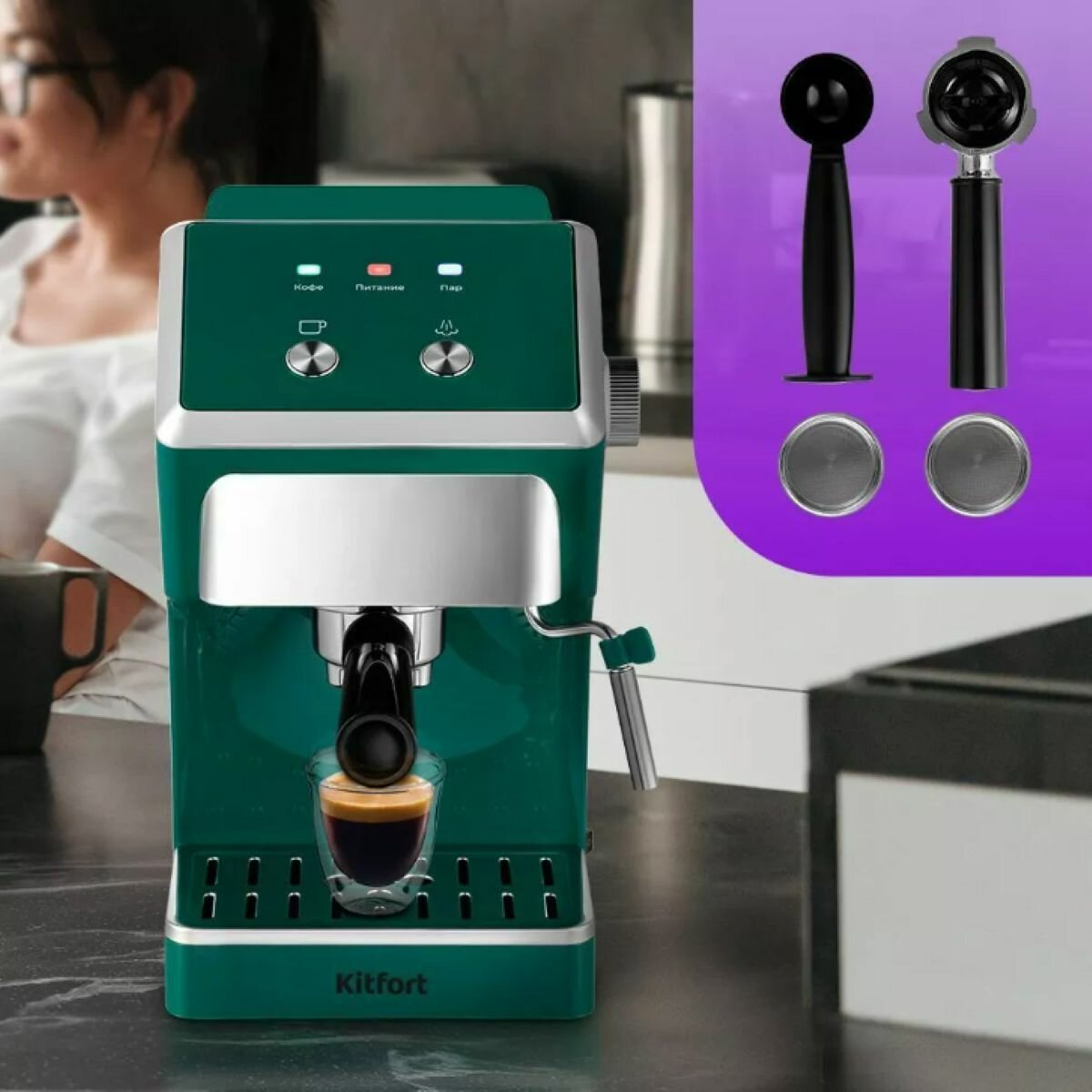 Кофеварка KitFort KT-754, рожковая, черный / нержавеющая сталь