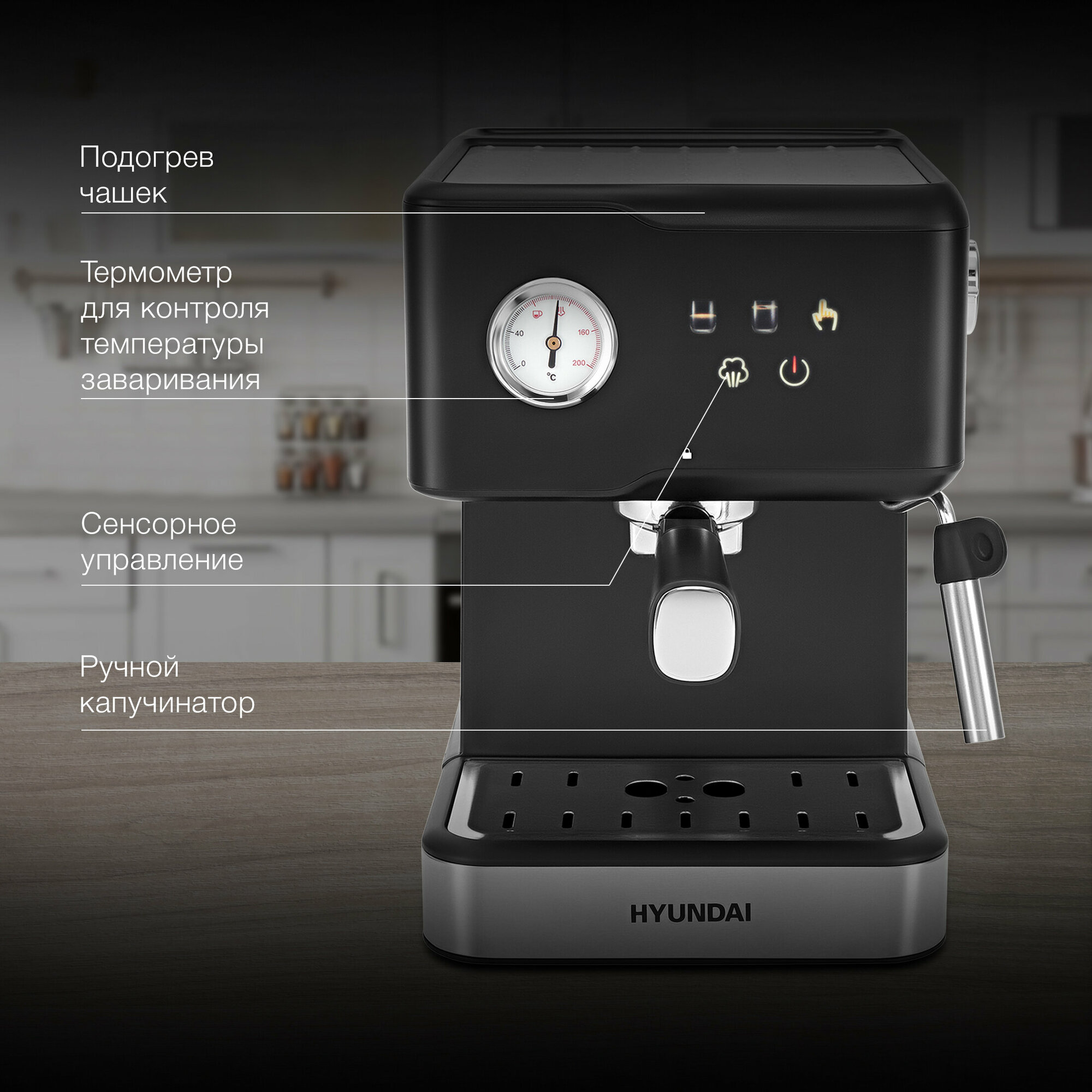 Кофеварка рожковая Hyundai HEM-4204 1000Вт черный . интересное: