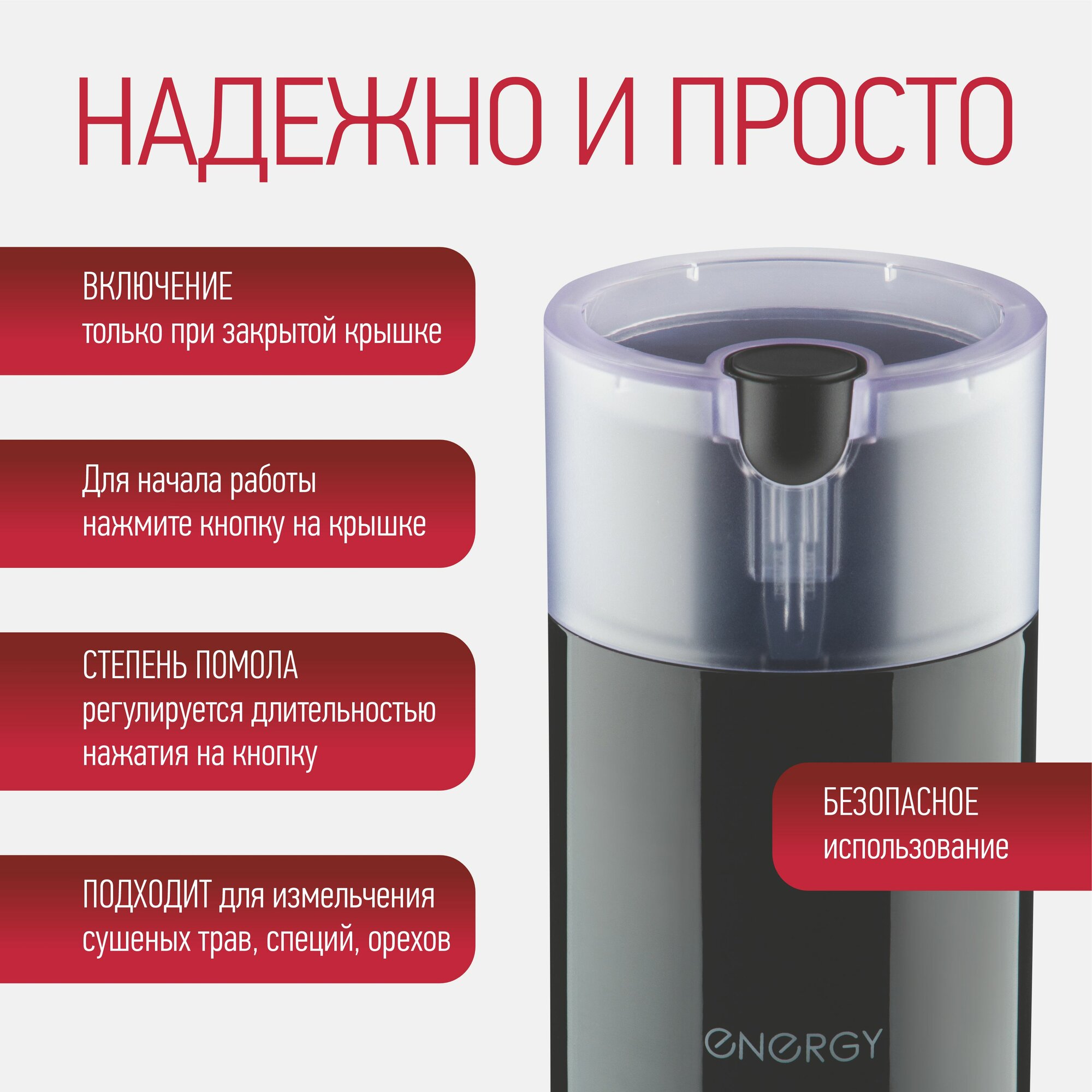 Кофемолка Energy EN-114, цвет: Черный 150Вт интересное: