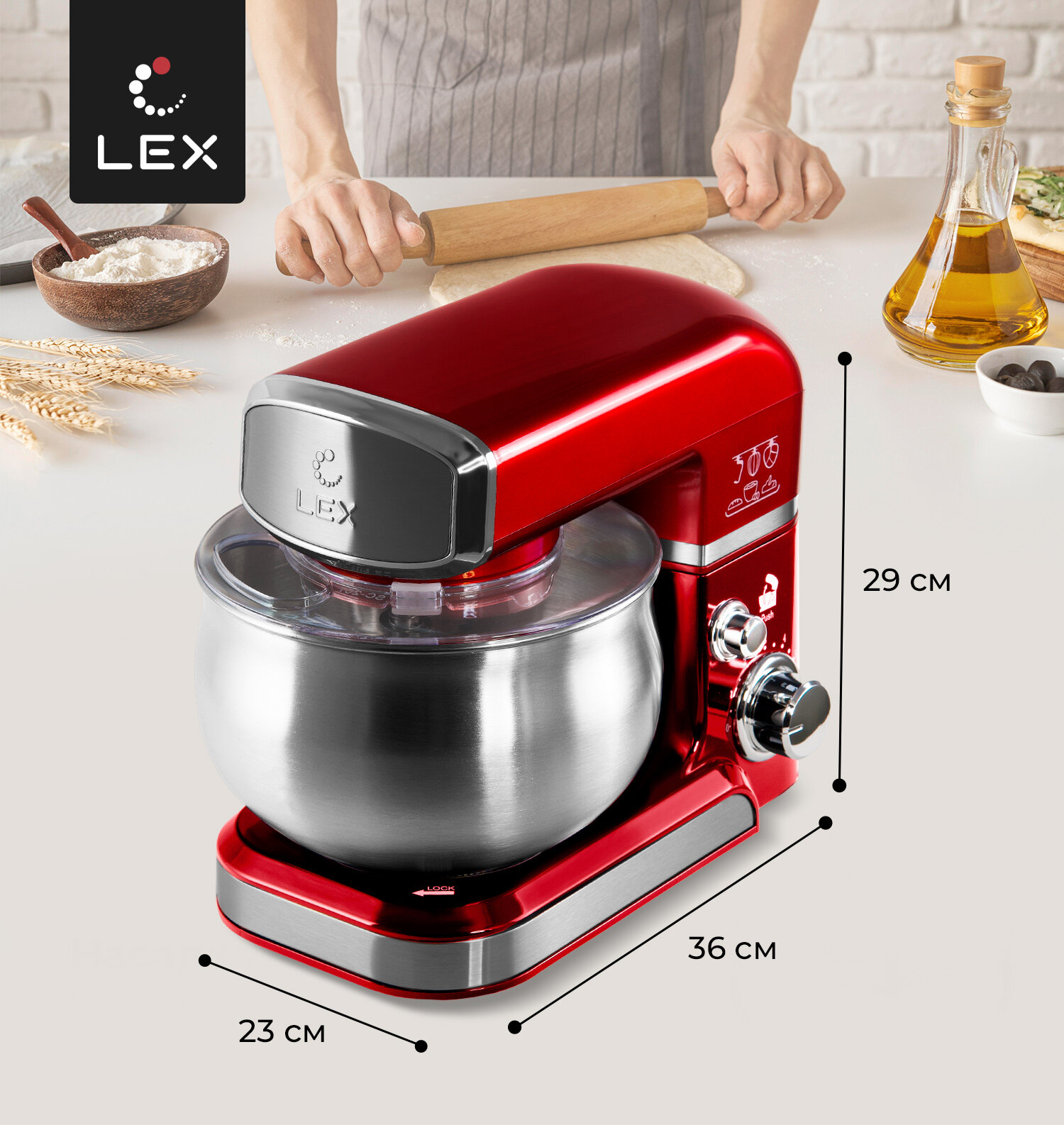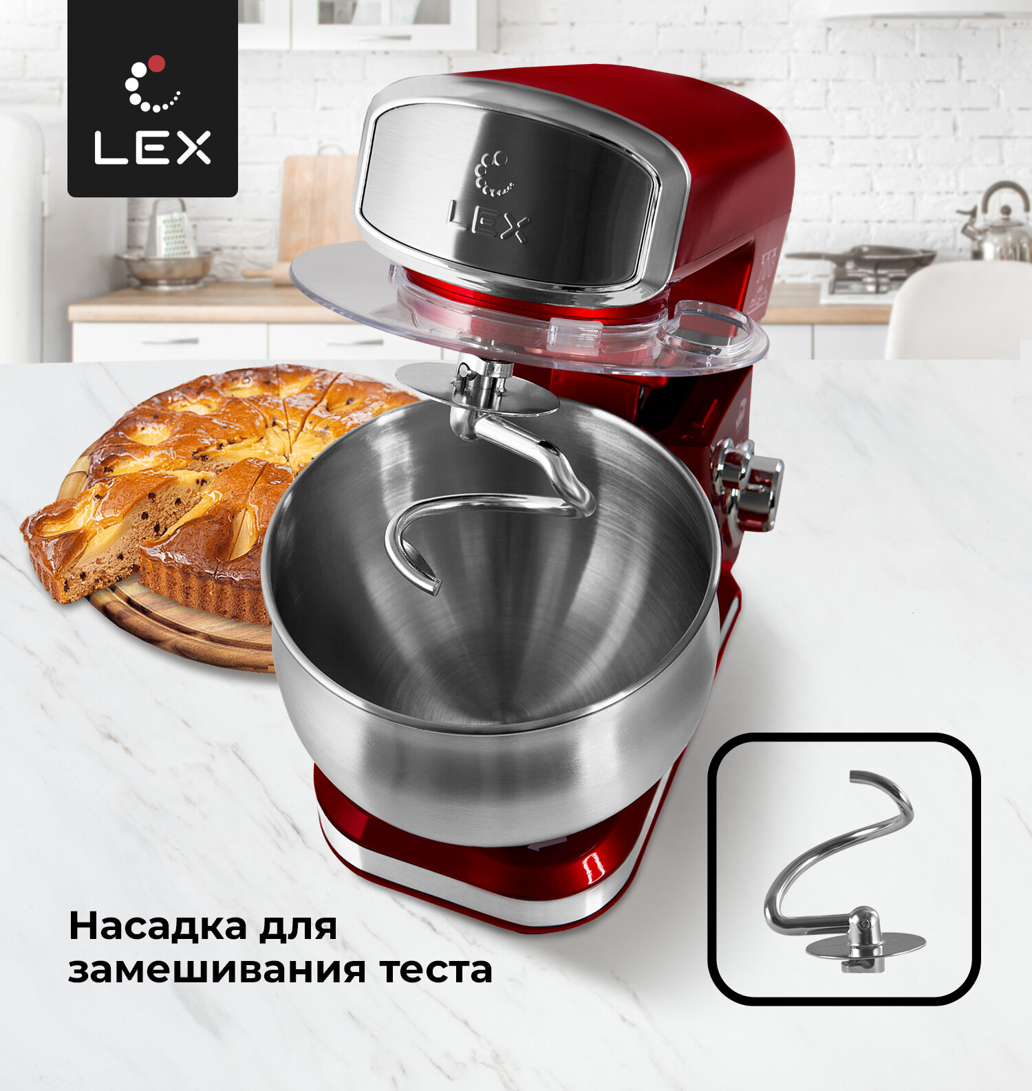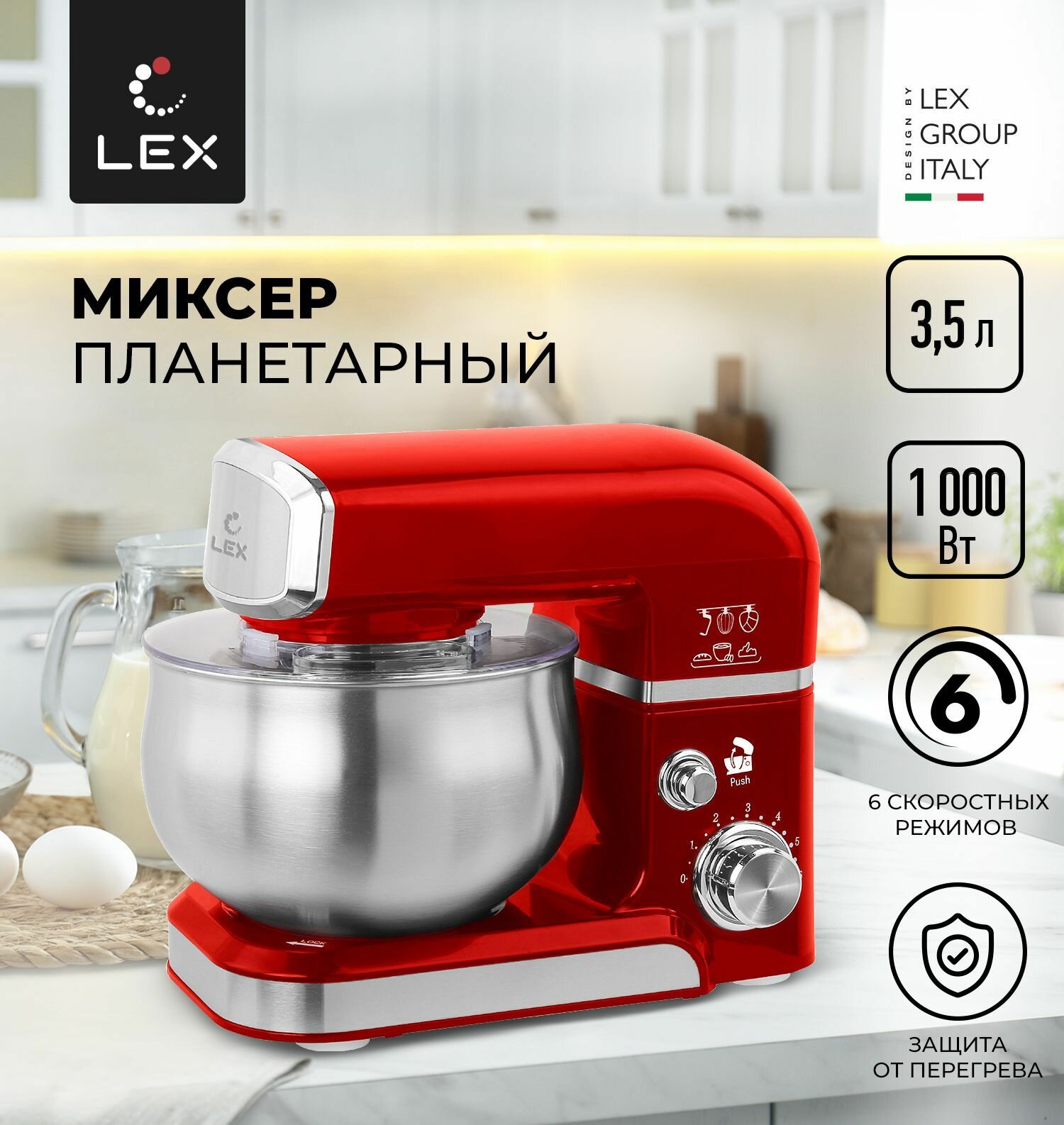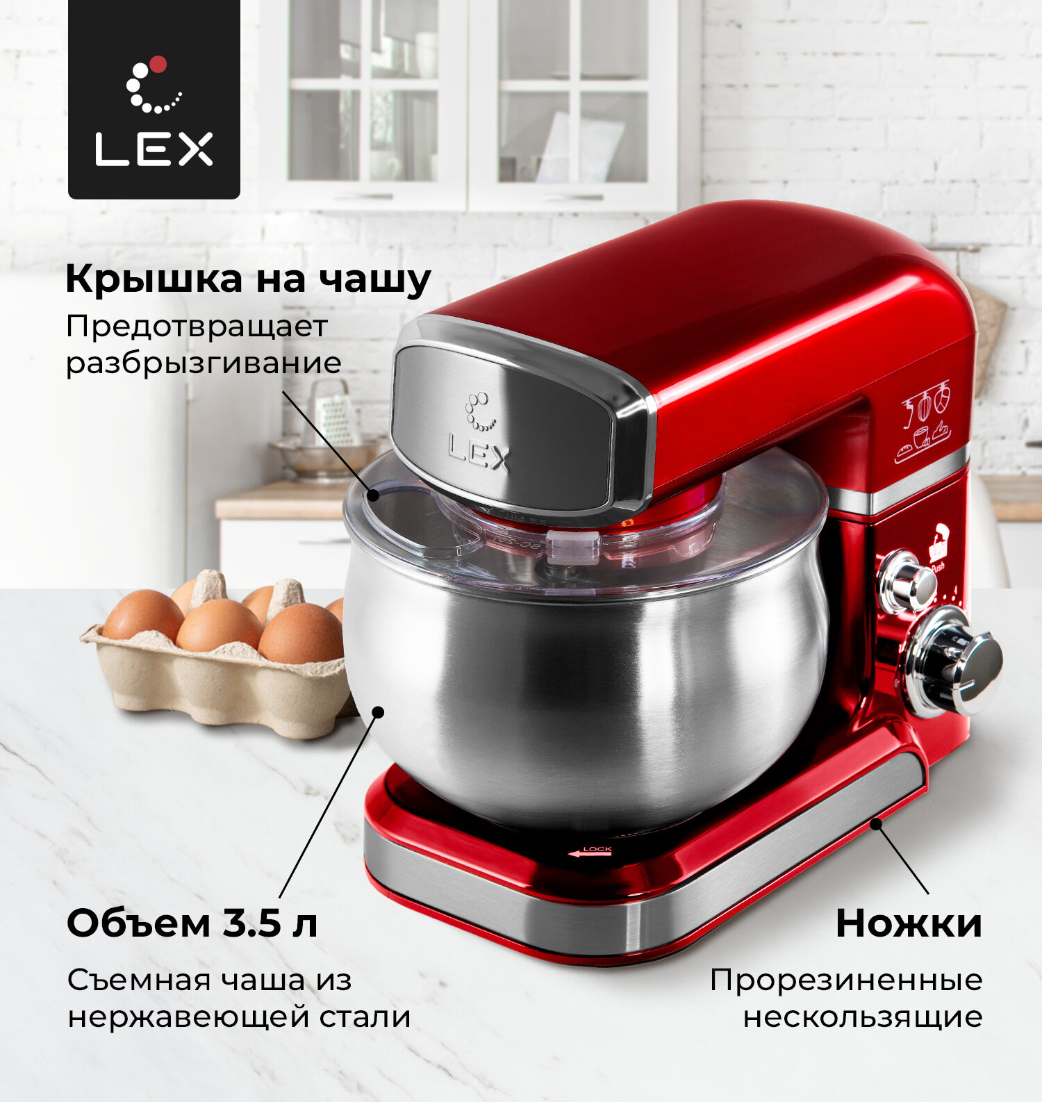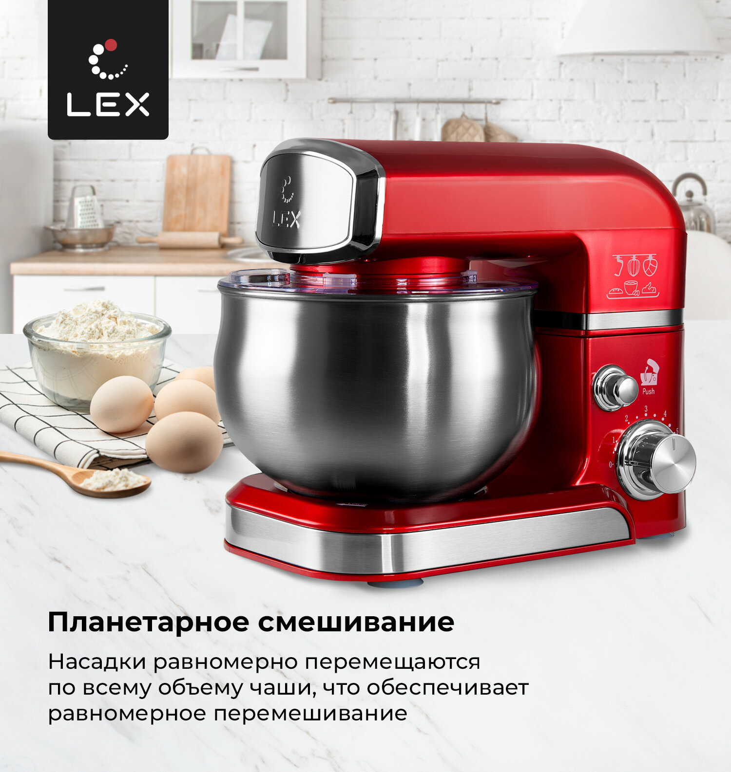 Миксер планетарный LEX LXMX 4112,Защита от перегрева, Защита от перегрузки, Прорезиненные нескользящие ножки, Объем чаши-3,5л. интересное: