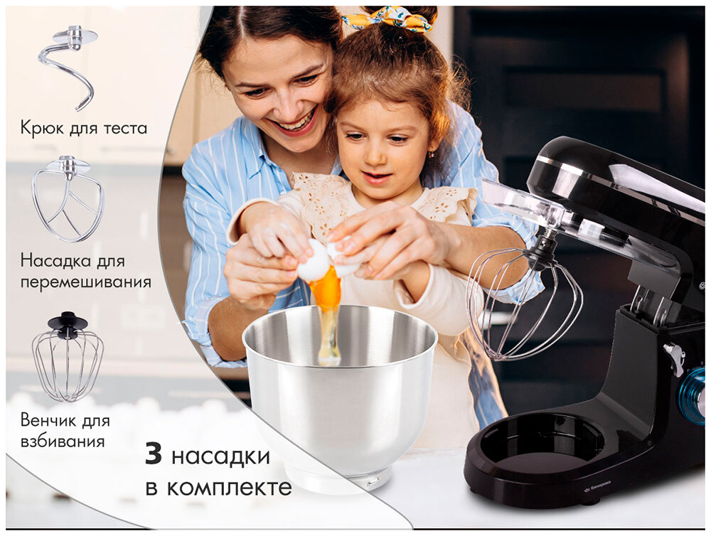 | Насадки | венчик для взбивания / крючки для замешивания теста |