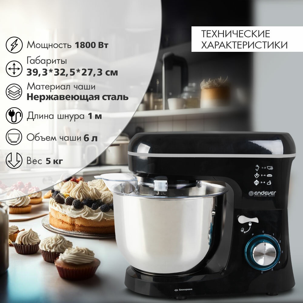 Планетарный миксер с чашей 6 литров ENDEVER SIGMA-120 / 1800 Вт интересное: