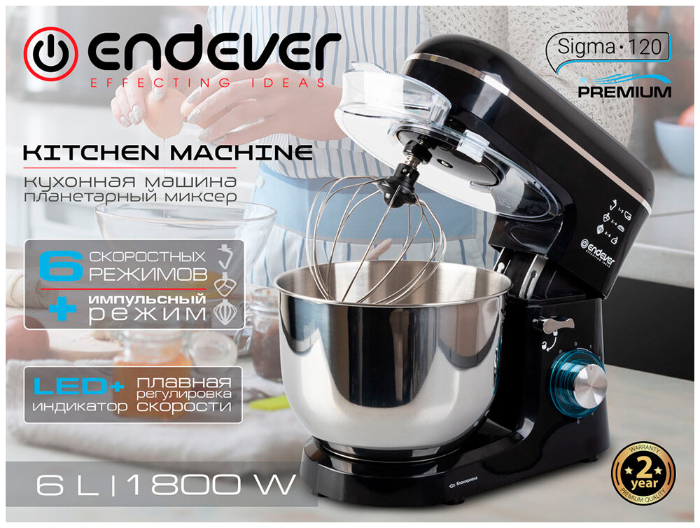 Купить Планетарный миксер с чашей 6 литров ENDEVER SIGMA-120 / 1800 Вт