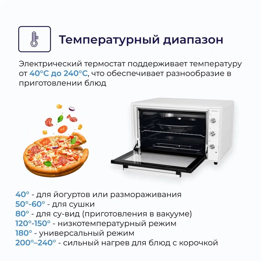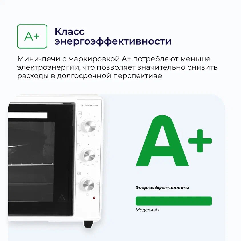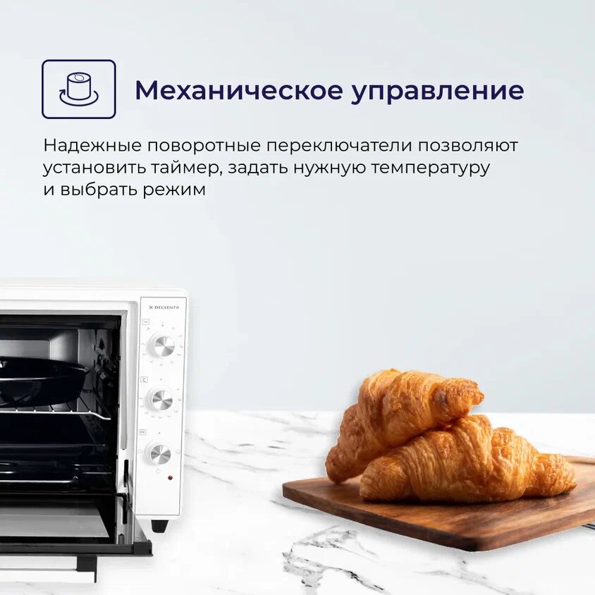 Мини печь электрическая DELVENTO D7000 / 70 литров / 3 режима / тостер / таймер 90 минут с оповещением / 2 противня / хромированная решетка / 240 градусов / автоотключение / цвет белый интересное: