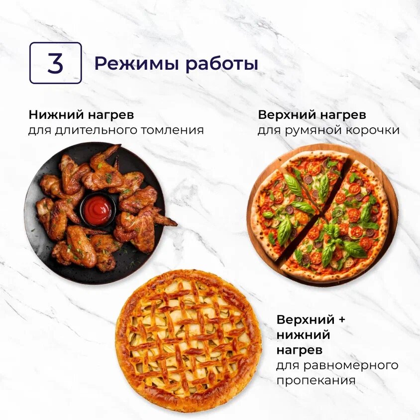| Режимы | верхний нагрев / верхний+нижний нагрев / нижний нагрев |