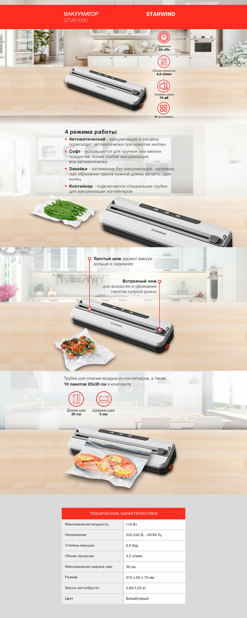 Вакуумный упаковщик Starwind STVA1000 серый