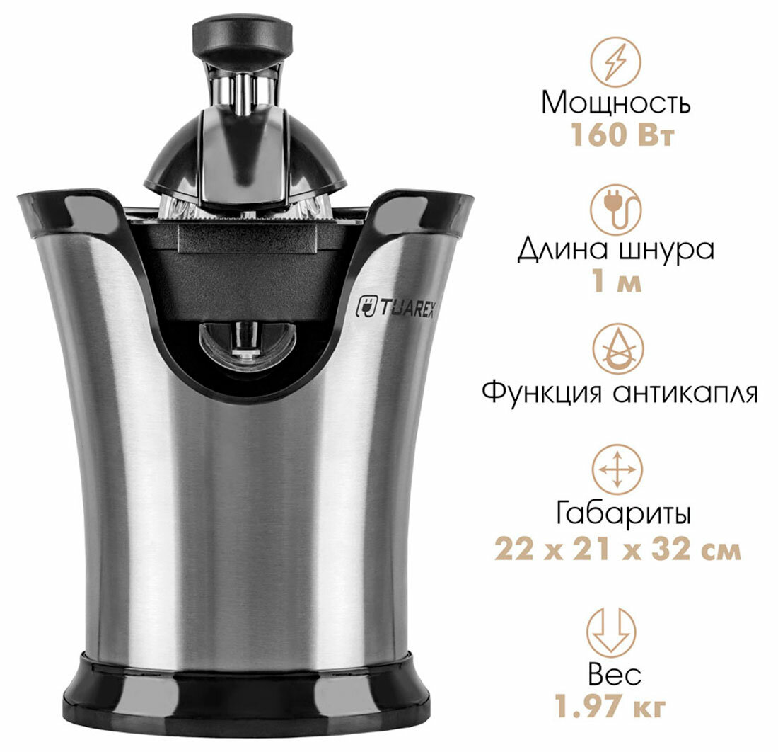 Соковыжималка для цитрусовых Tuarex TK-7001, черный/стальной интересное: