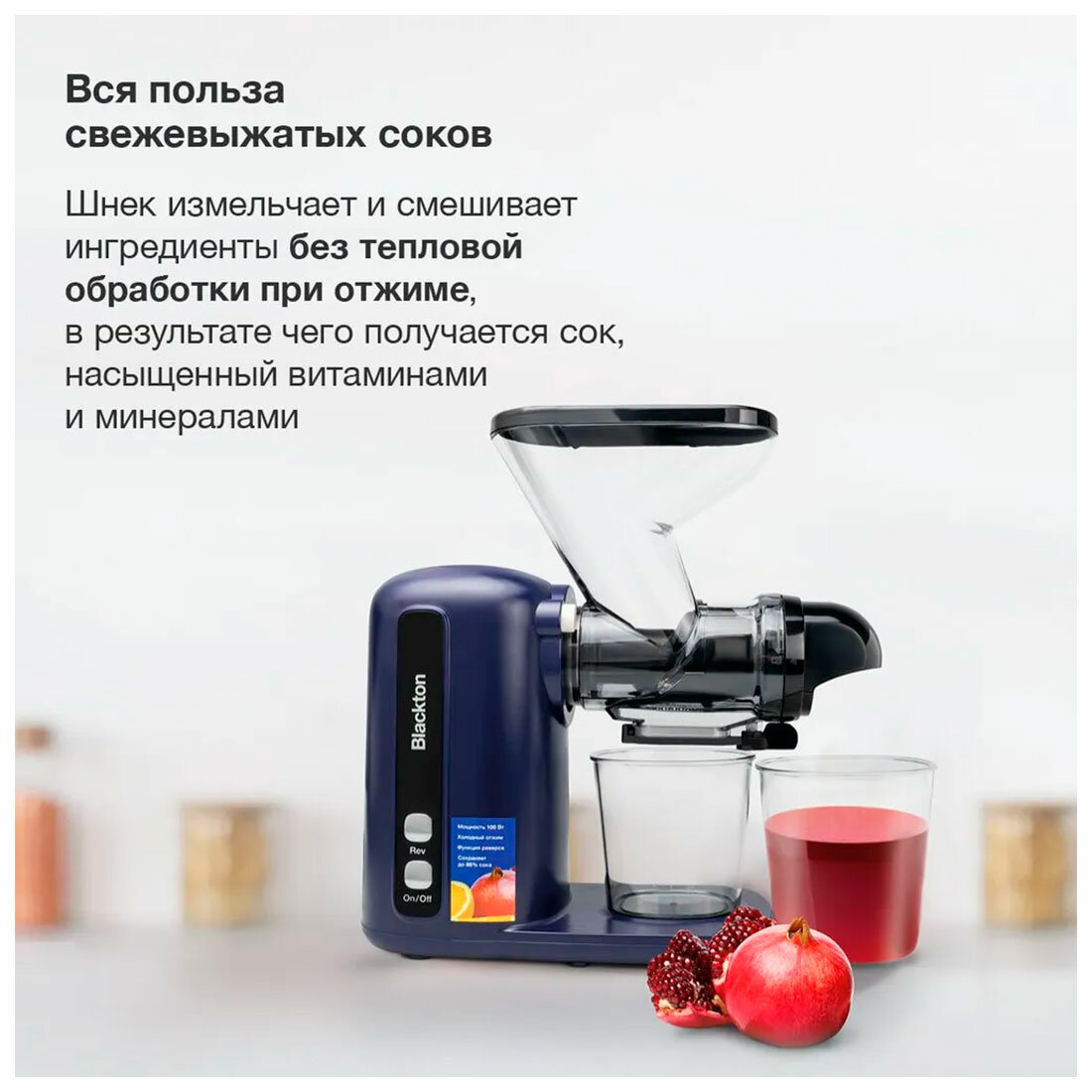 Соковыжималка Blackton Bt J2111, шнековая, 100 Вт, 0.28/0.36 л, тёмно-синяя интересное: