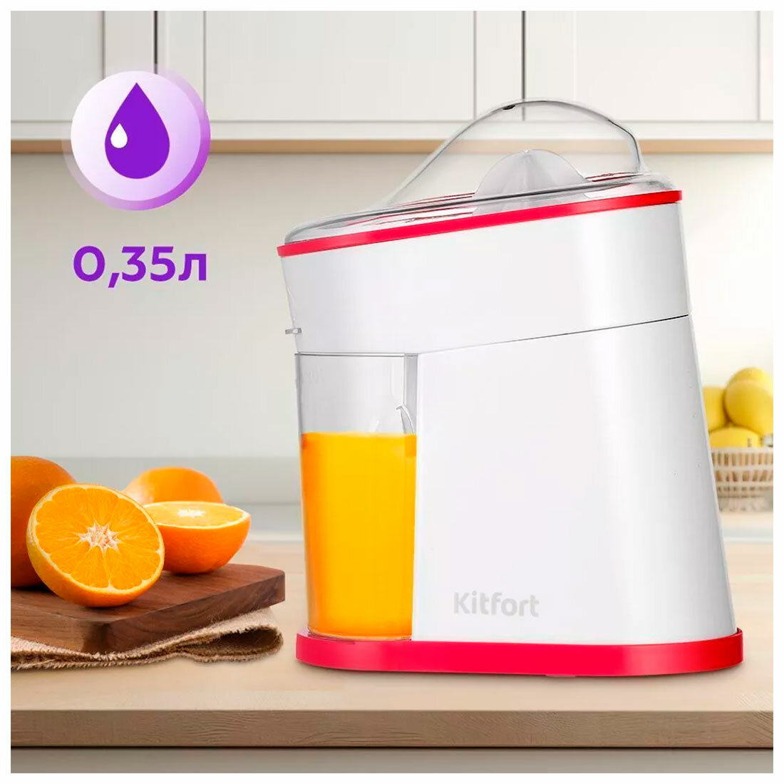 Соковыжималка для цитрусовых Kitfort КТ-1150-1, бело-малиновый интересное: