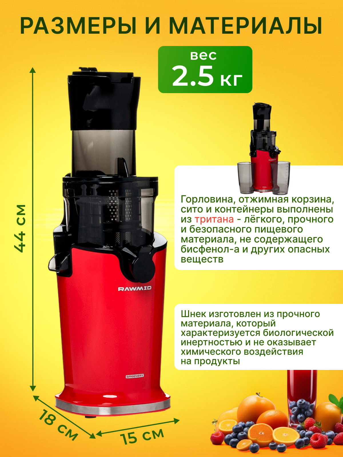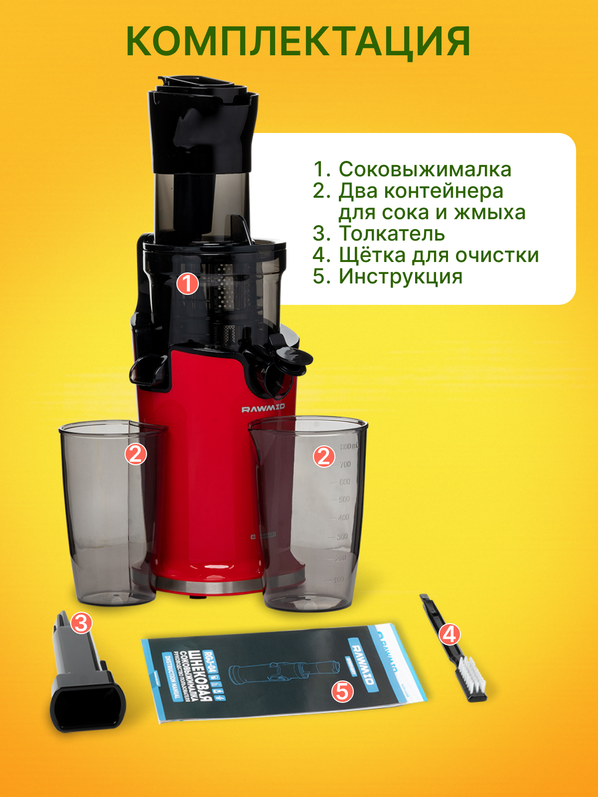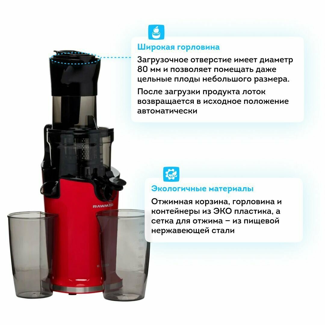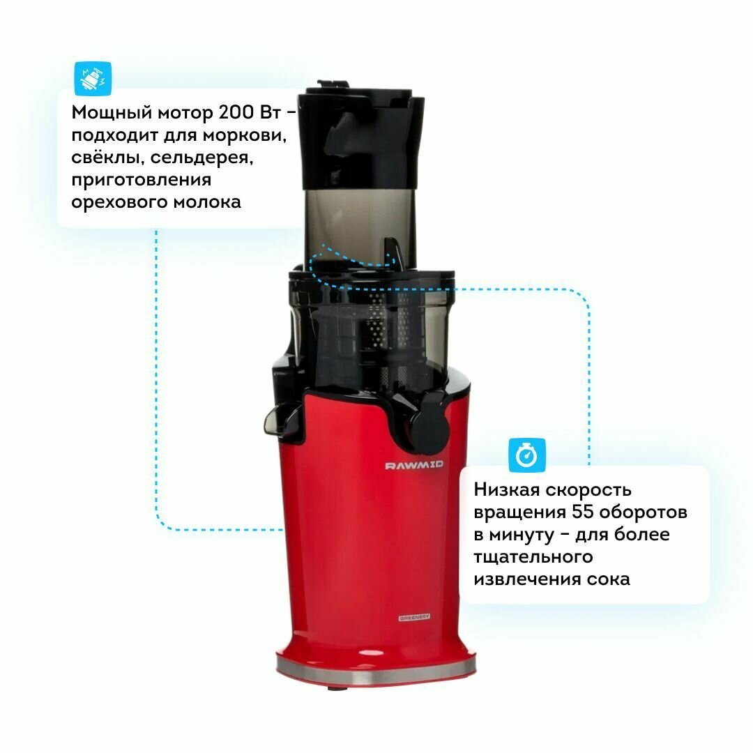 Соковыжималка шнековая RAWMID Greenery RGJ-04 красная интересное: