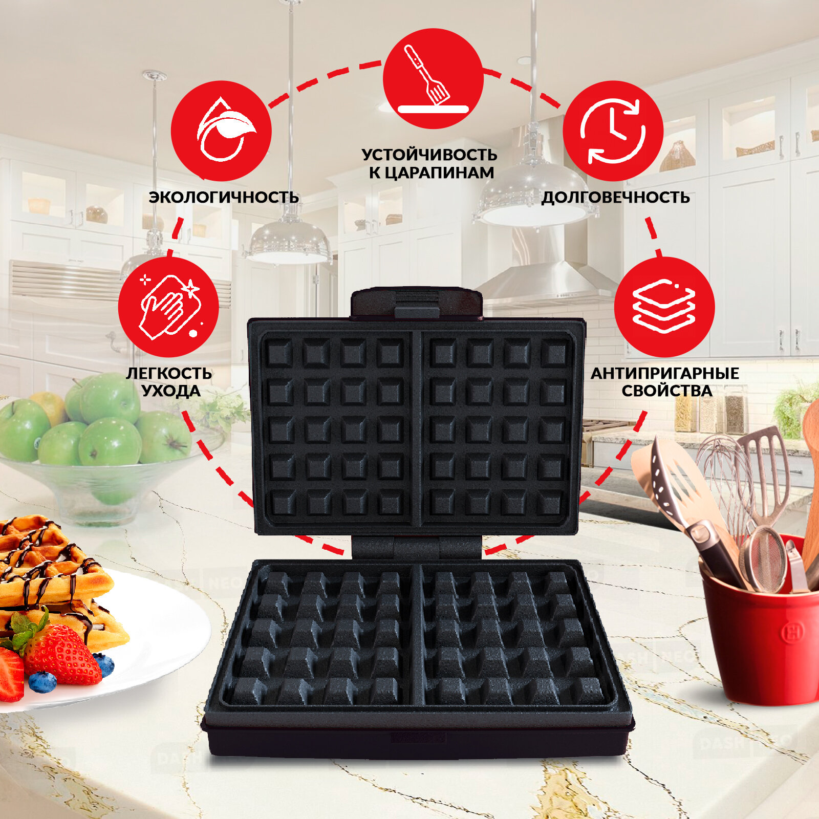 Вафельница электрическая DASH NEO с керамической покрытием двойная для венских и бельгийских вафель черная интересное: