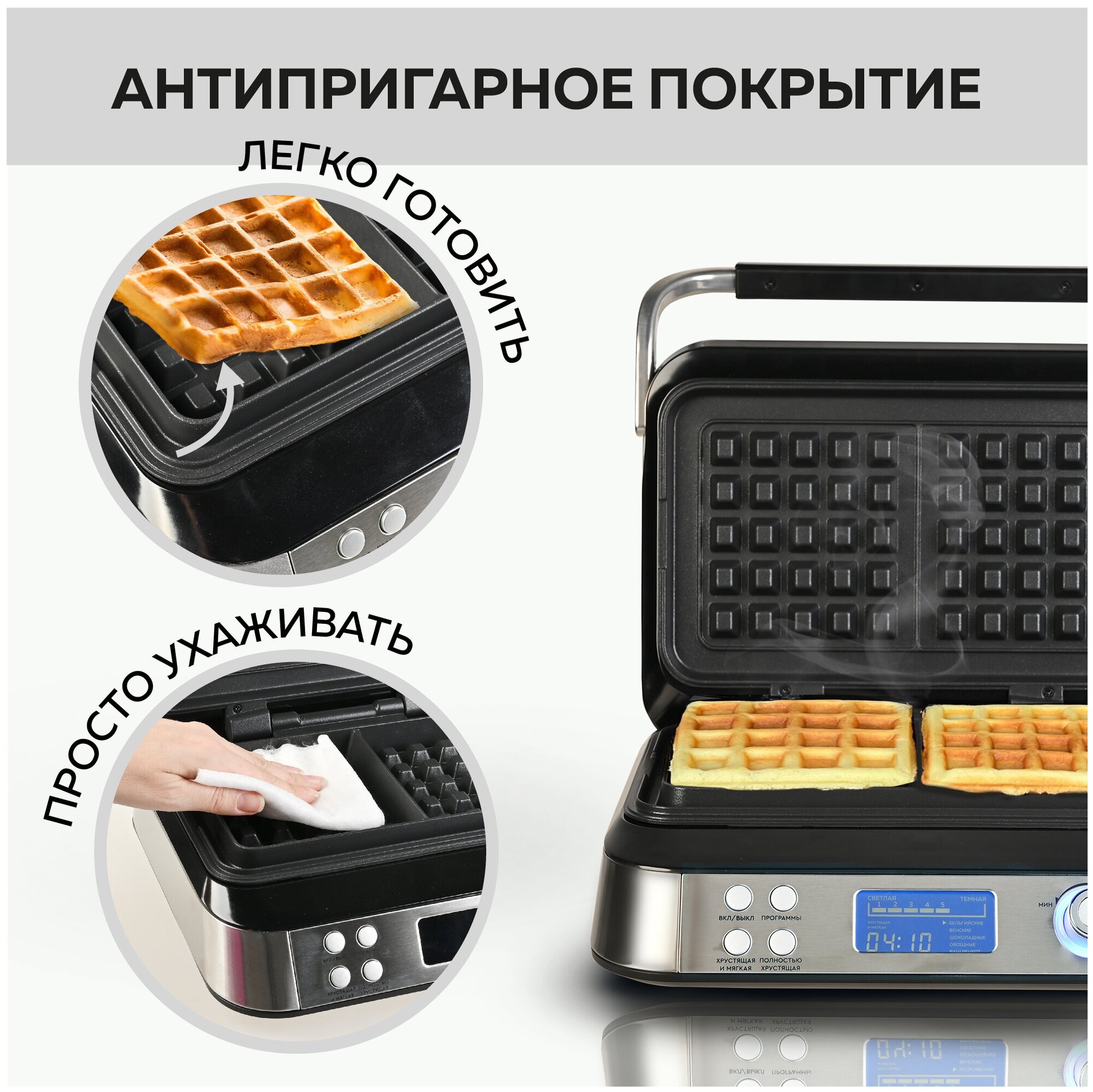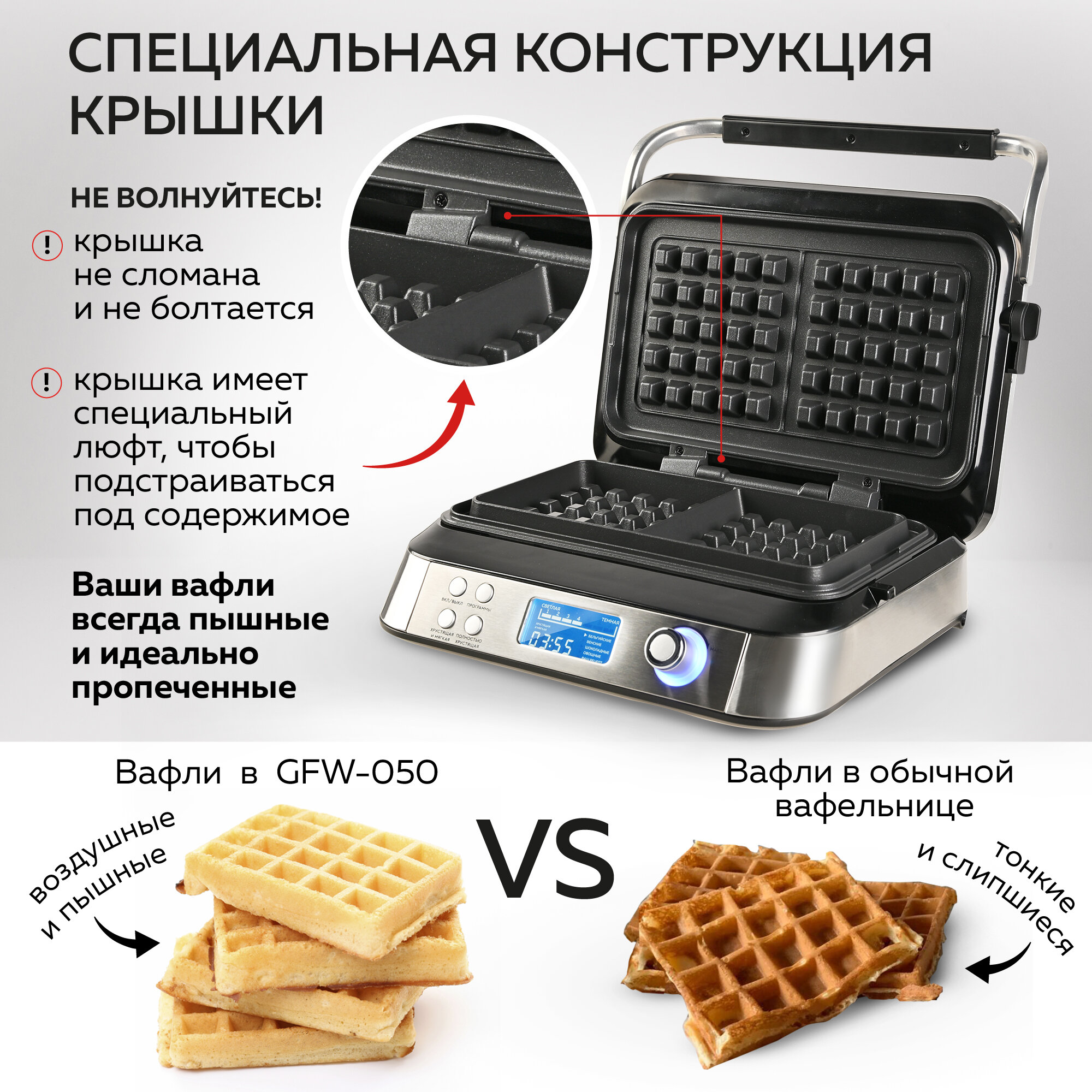 GFGRIL Электрическая вафельница GFW-050, 4 автопрограммы, 14 степеней поджаривания