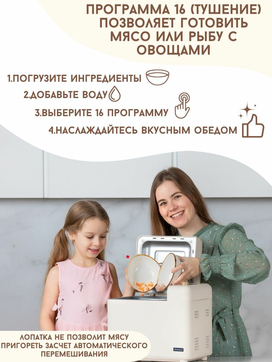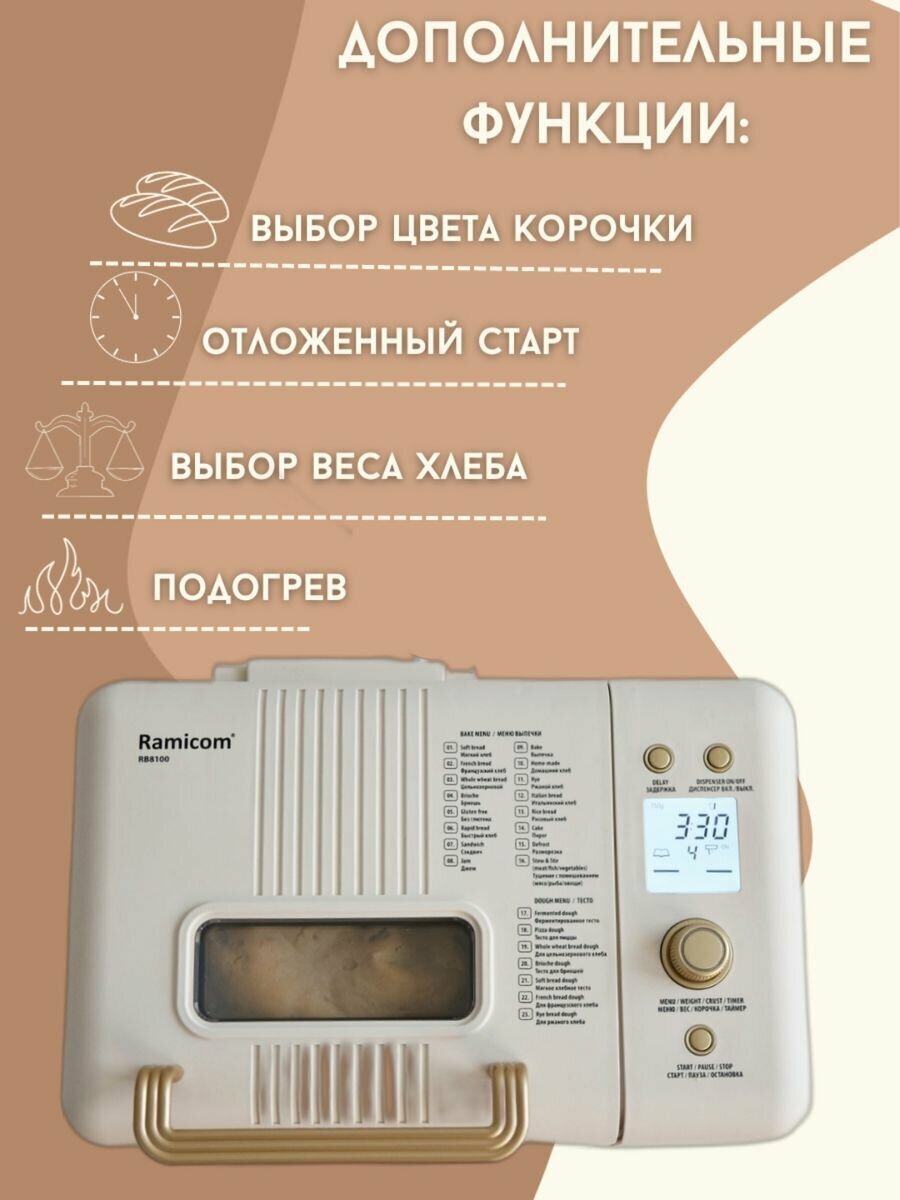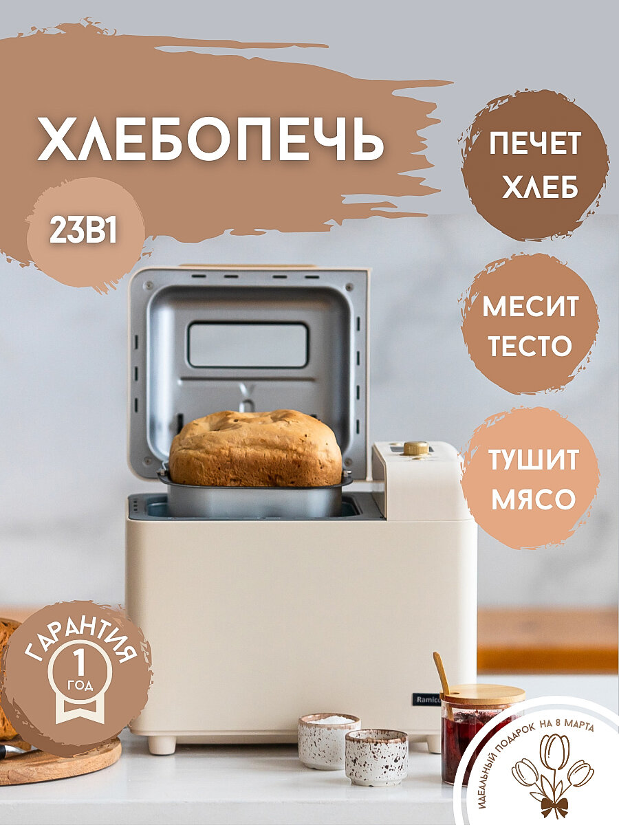 Хлебопечка Ramicom с автоматическим замесом теста, 23 программы интересное: