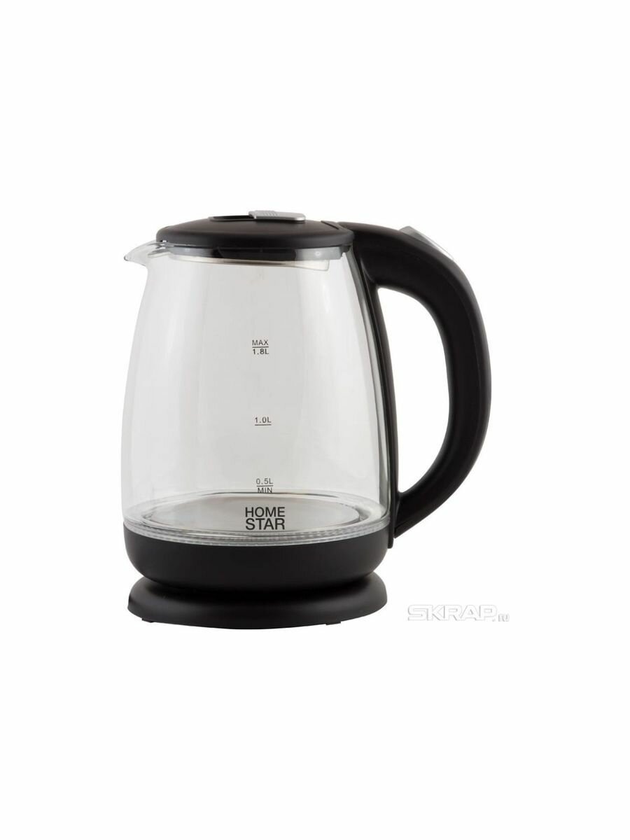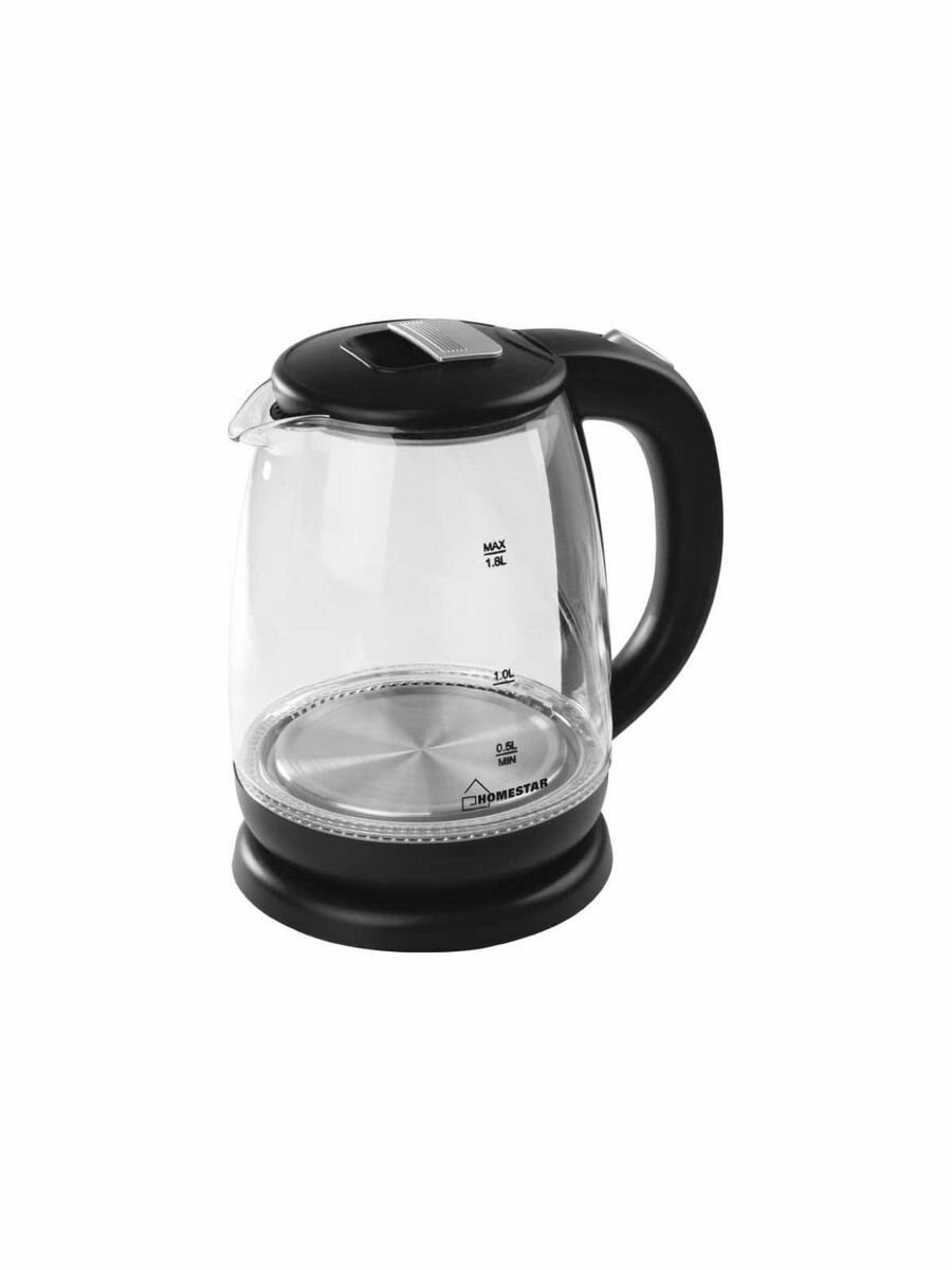Чайник электрический Homestar HS-1018 1,8л, стекло, черный, 1500 Вт (12) 005966 .
