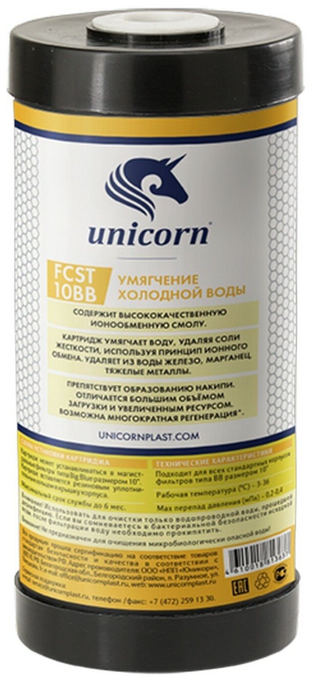 Сменный картридж Unicorn FCST 10BB для умягчения воды с ионнообменой смолой для удаления солей жесткости