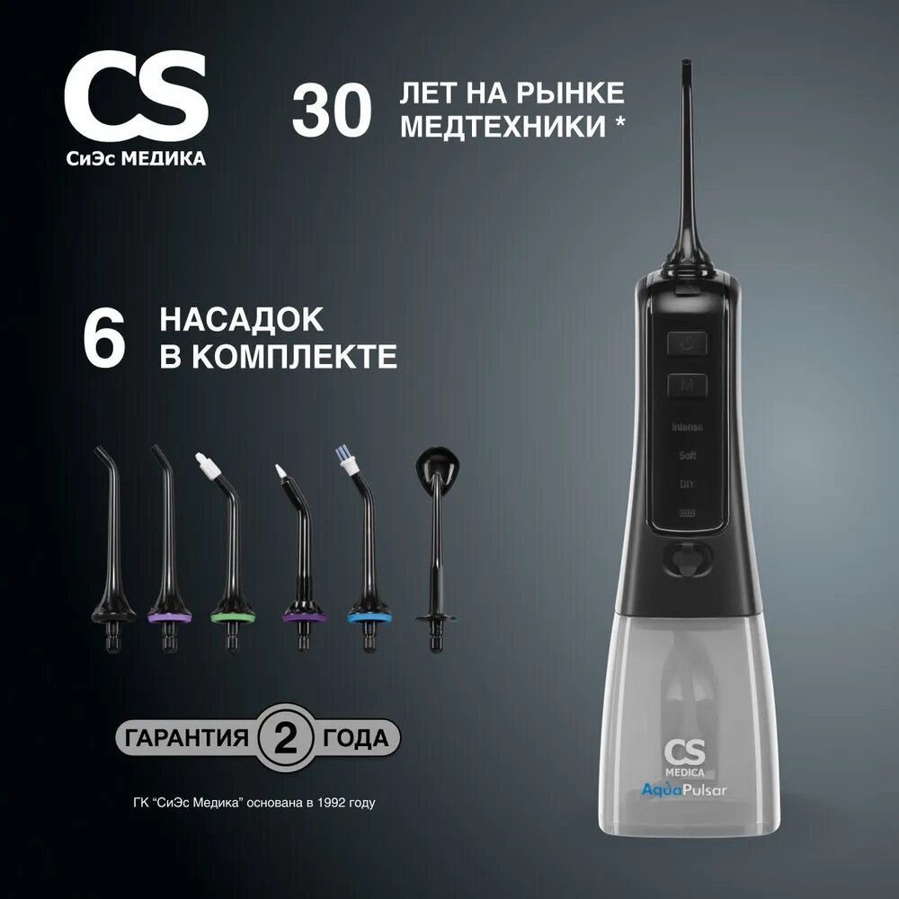 Ирригатор CS Medica AquaPulsar CS-8 Elite портативный, черный интересное: