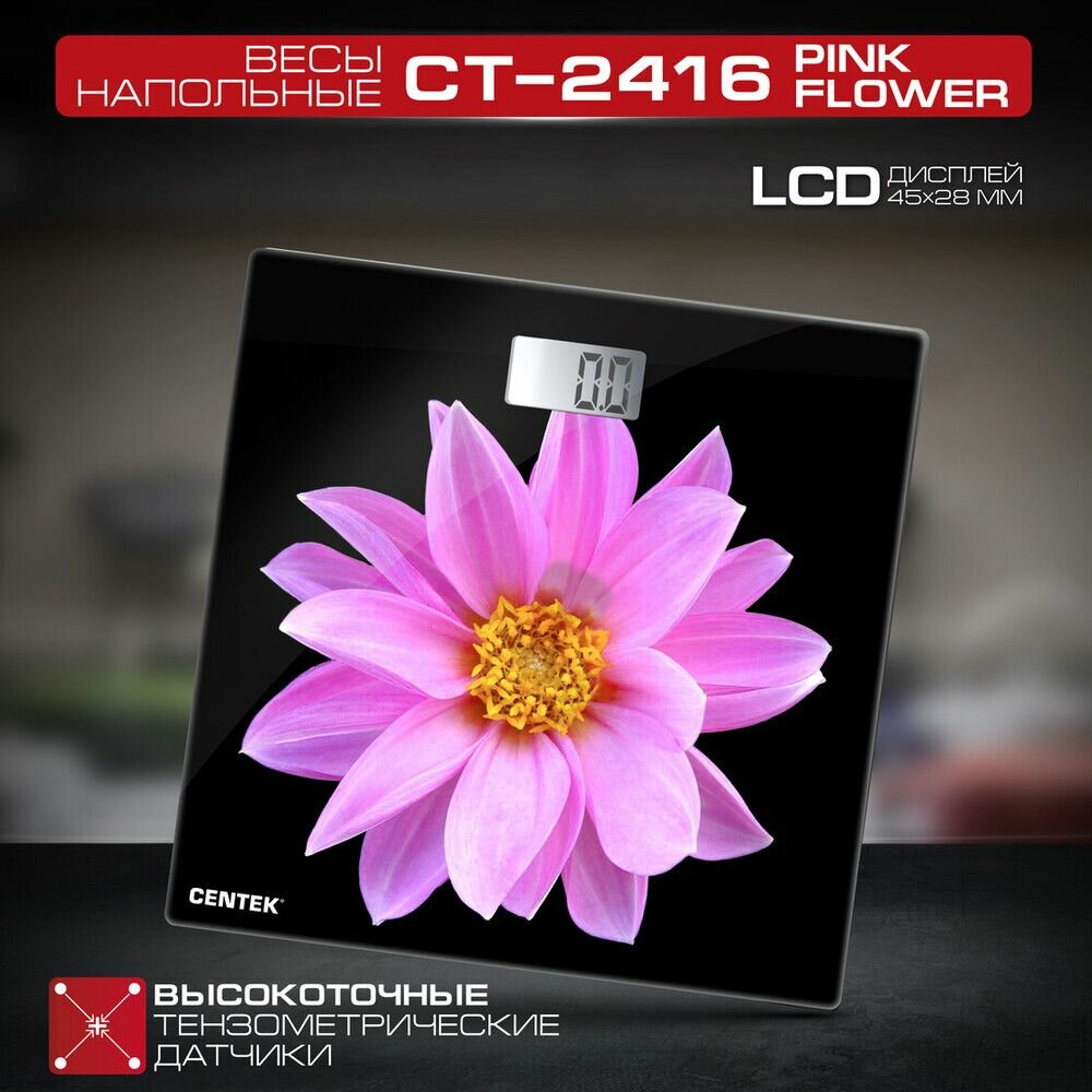 Весы напольные CENTEK CT-2416 рисунок ''Pink Flower'' интересное: