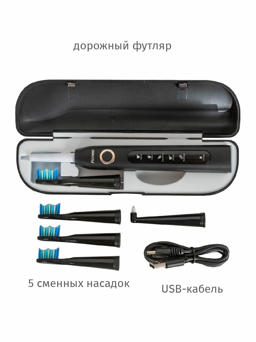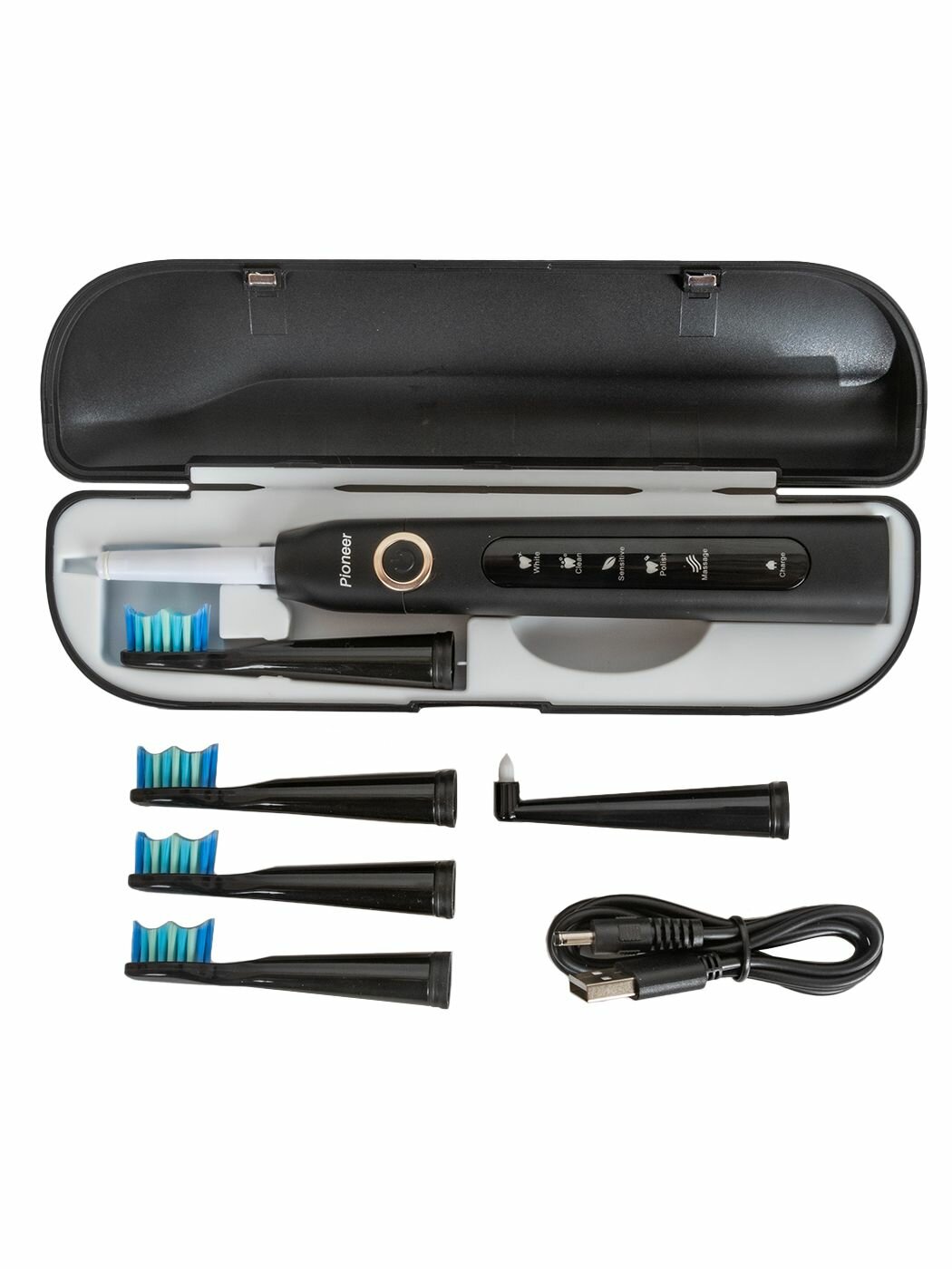 Купить Электрическая зубная щетка Pioneer TB-1011 с водонепроницаемым корпусом IPX7, 5 сменных насадок, USB кабель, 5 режимов