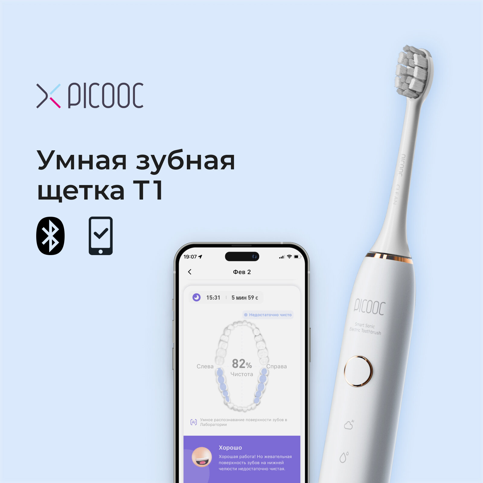 Умная зубная щетка Picooc T1 (Белый) интересное: