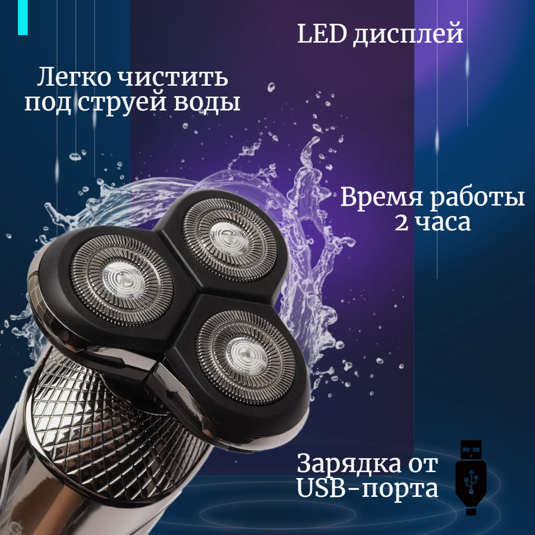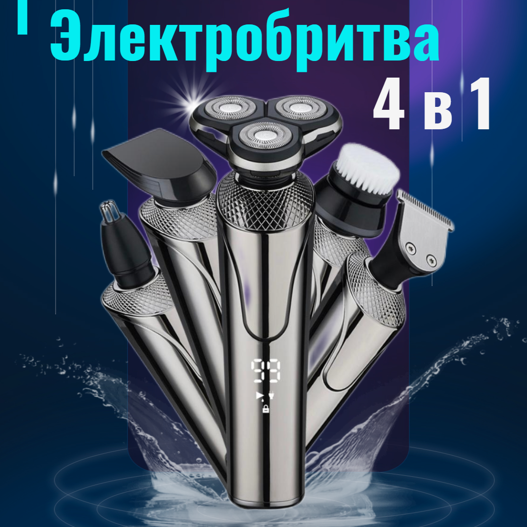 Беспроводная электробритва 4 в 1 / Электрическая бритва / Триммер для носа и ушей / Машинка для стрижки волос/ Пилинг-щетка для лица интересное: