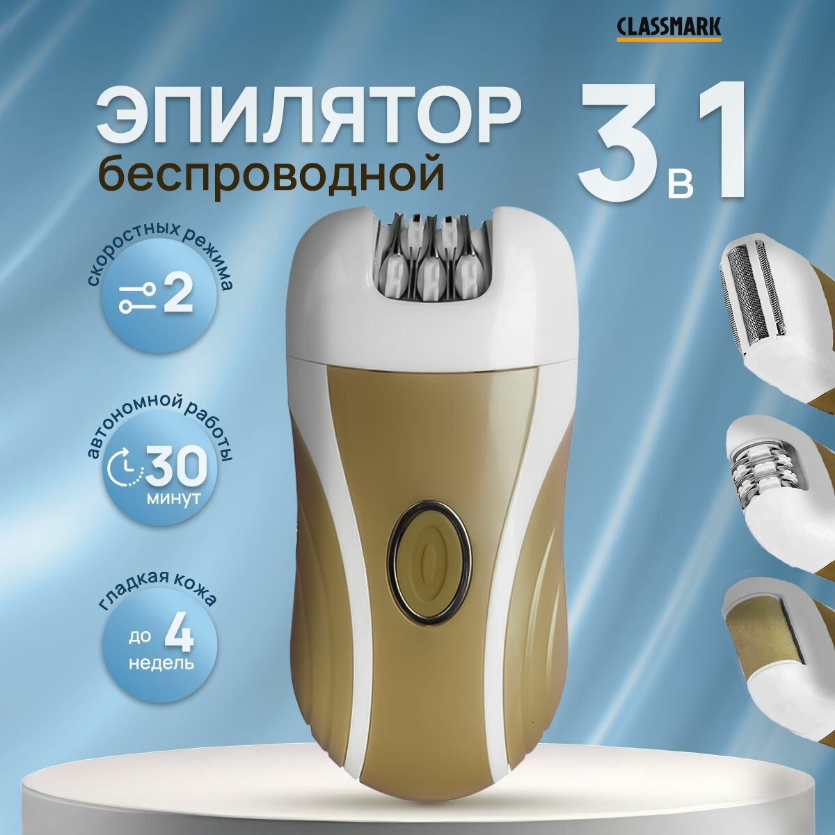 Купить Эпилятор женский электрический Classmark с 3 насадками беспроводной на аккумуляторе для удаления волос с тела, зоны бикини и пяток