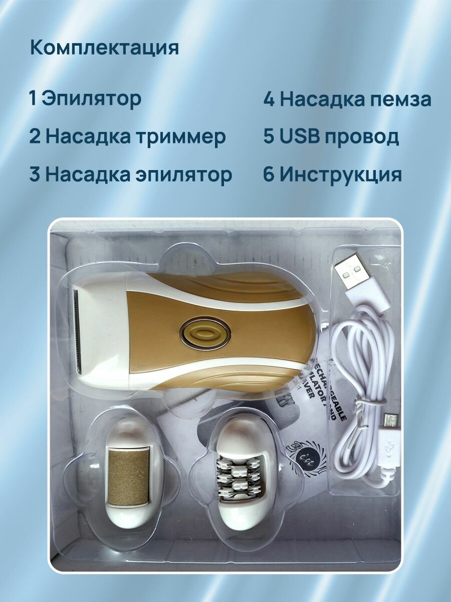 Эпилятор женский электрический Classmark с 3 насадками беспроводной на аккумуляторе для удаления волос с тела, зоны бикини и пяток интересное: