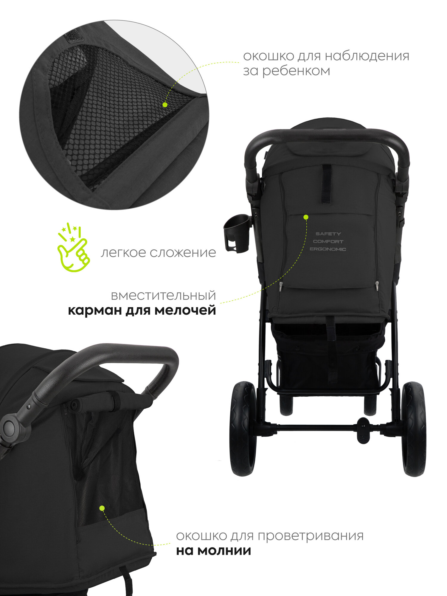 СохранитьПрогулочная коляска Jovola SELENA, всесезонная, черная интересное: