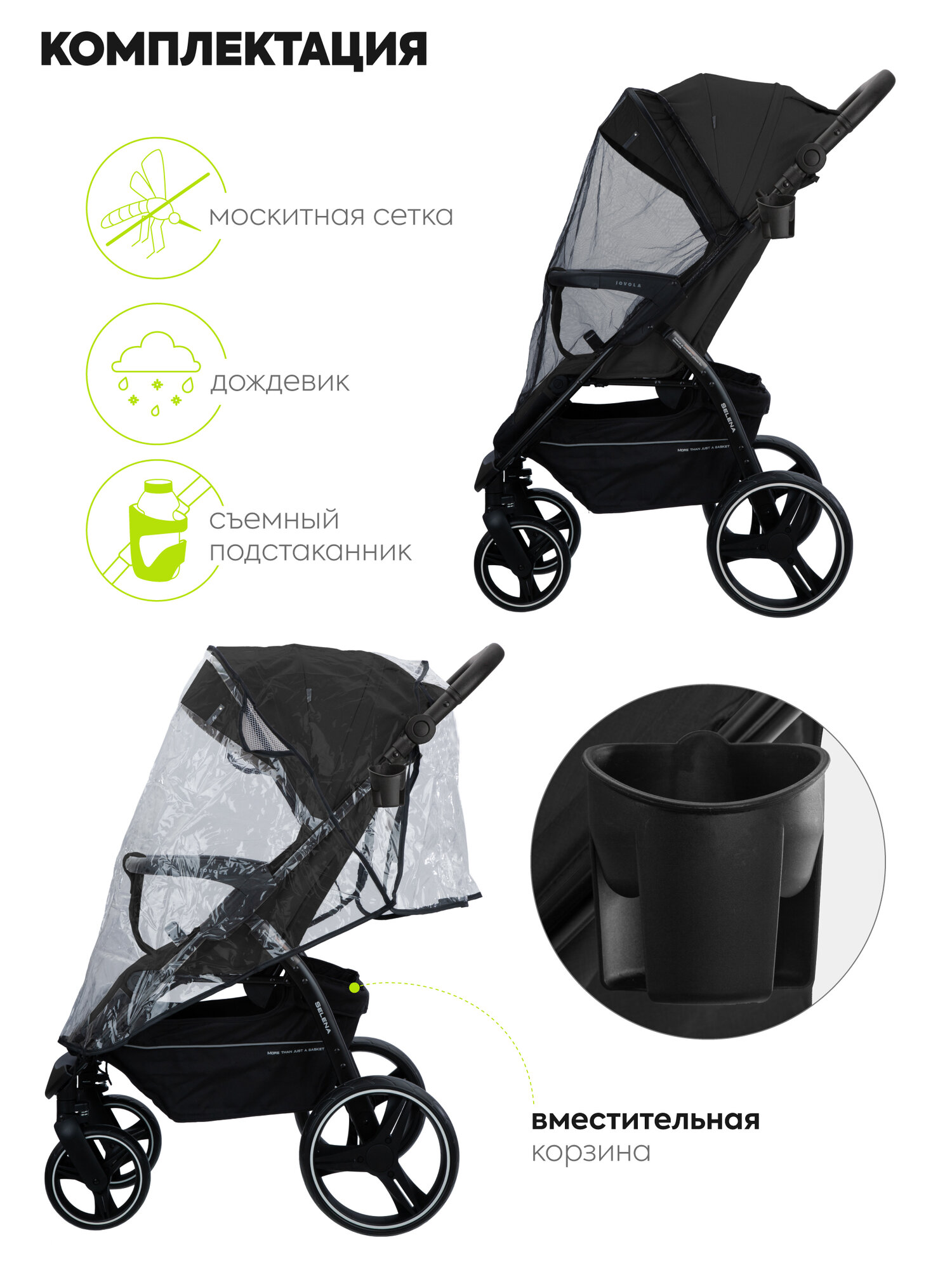 | Аксессуары в комплекте | антимоскитная сетка, бампер, дождевик, накидка на ноги, подстаканник |
