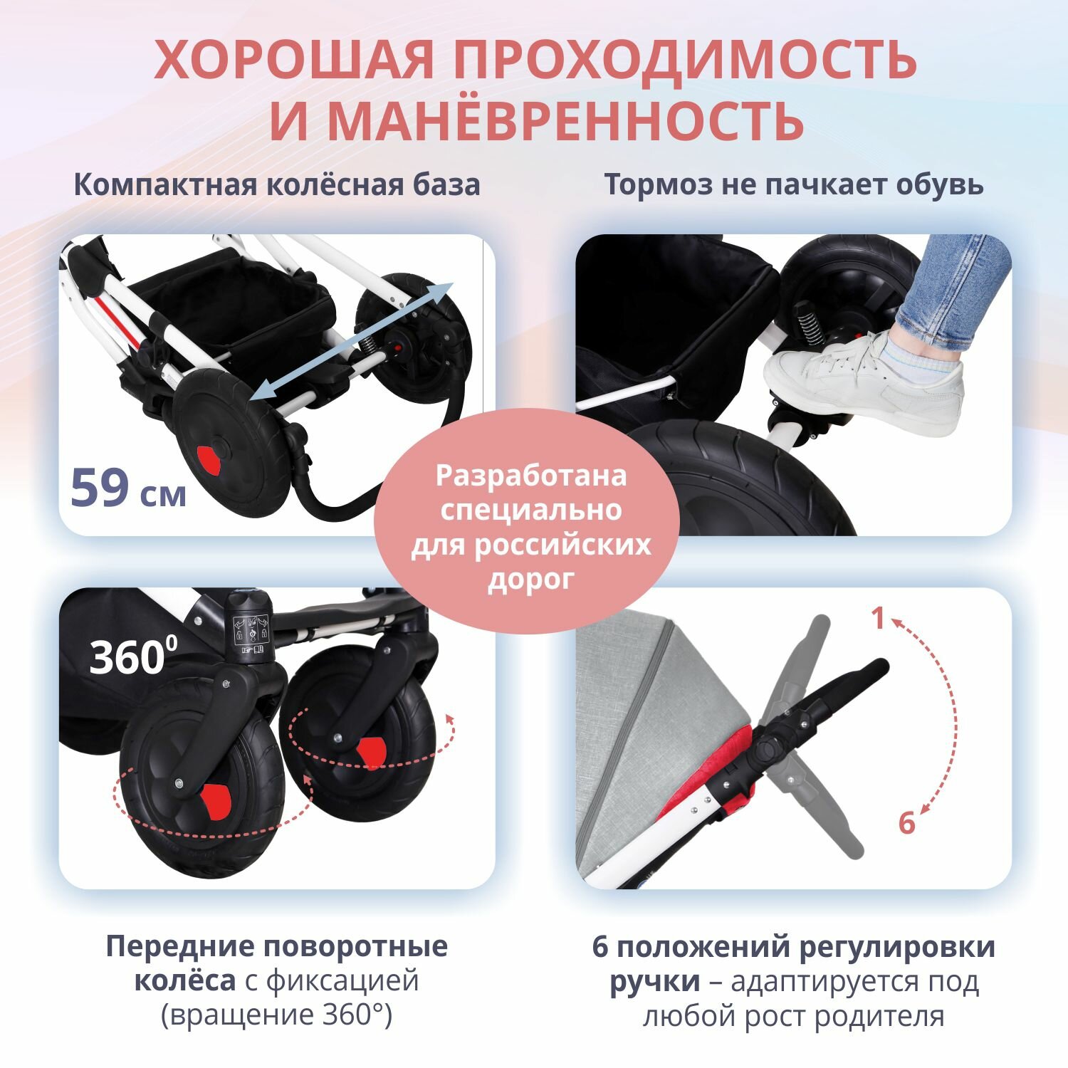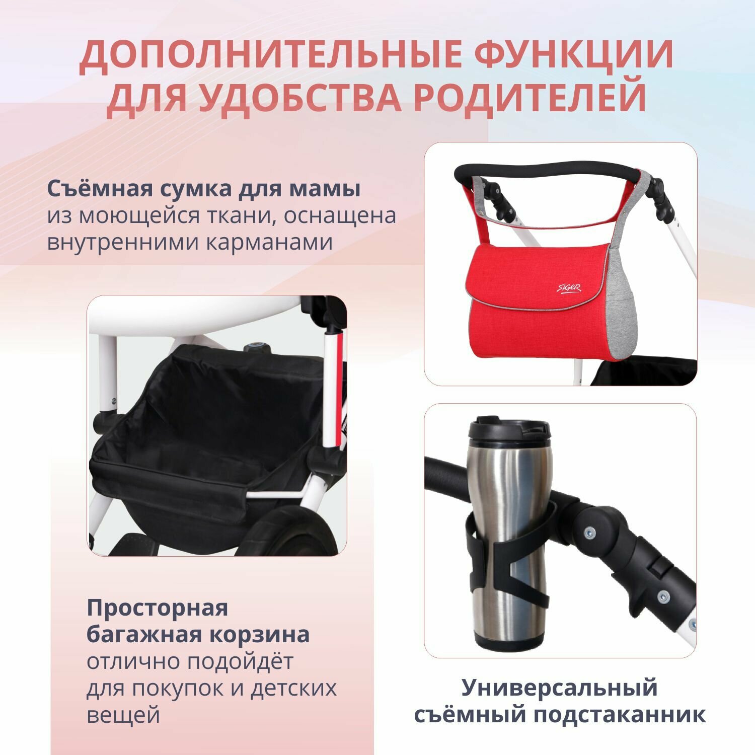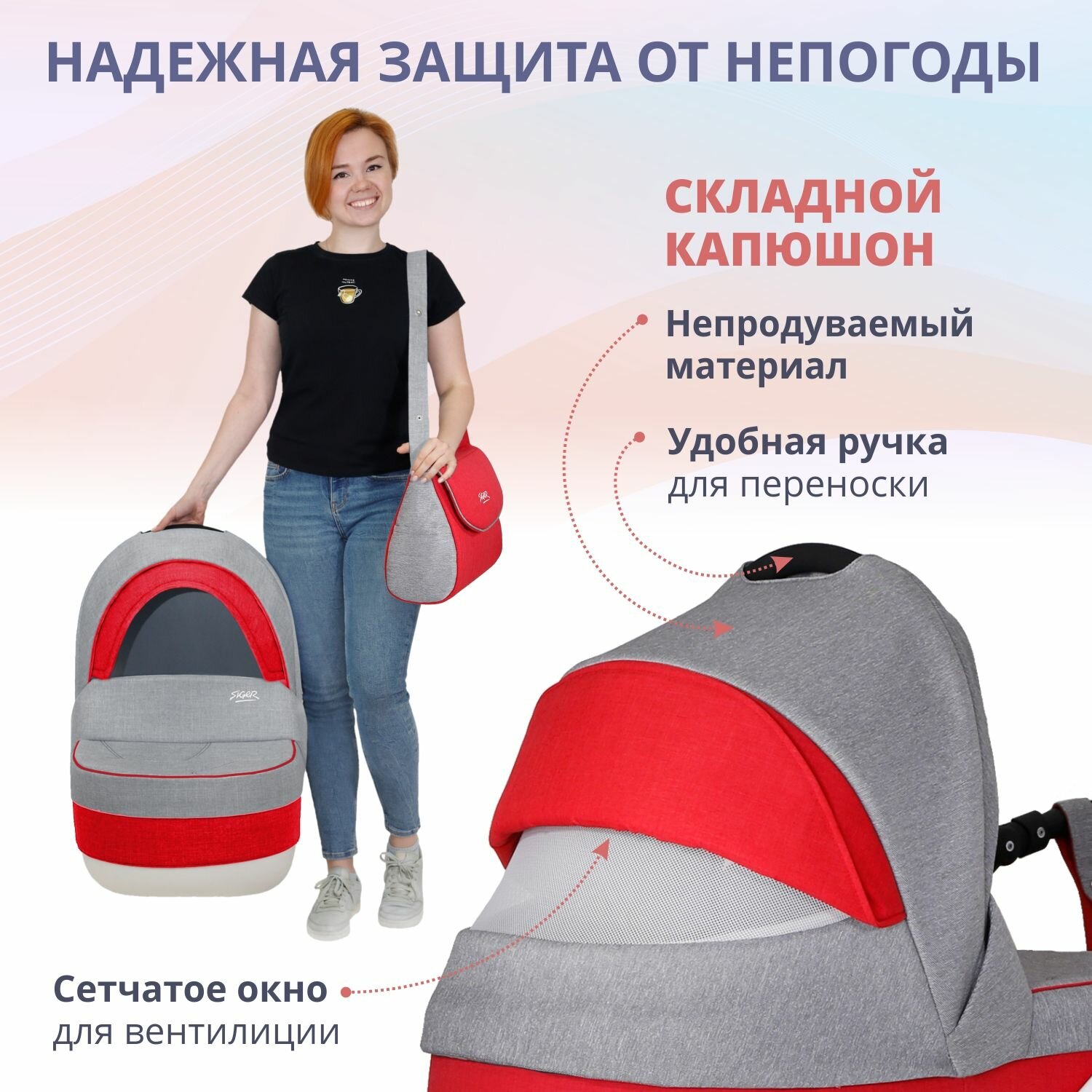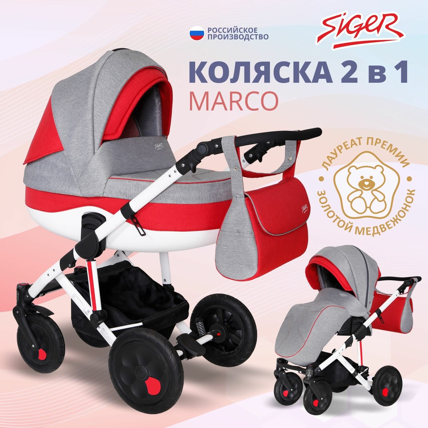 Коляска для новорожденных 2 в 1 трансформер Siger Marco, серый/красный интересное: