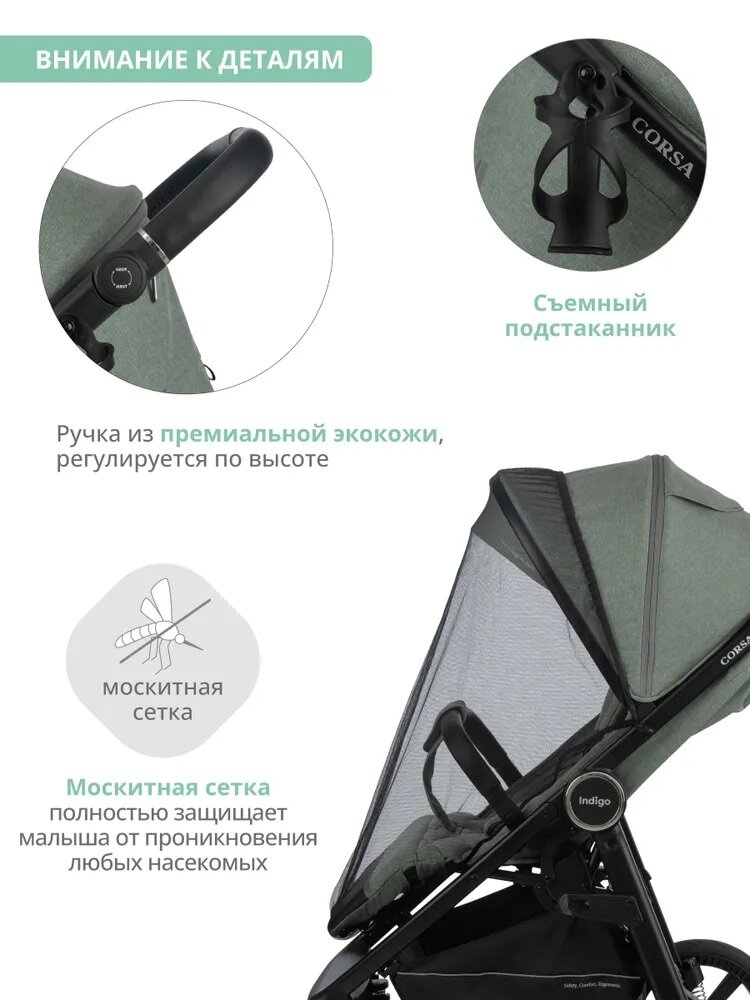 СохранитьПрогулочная коляска Indigo Corsa, оливковый интересное: