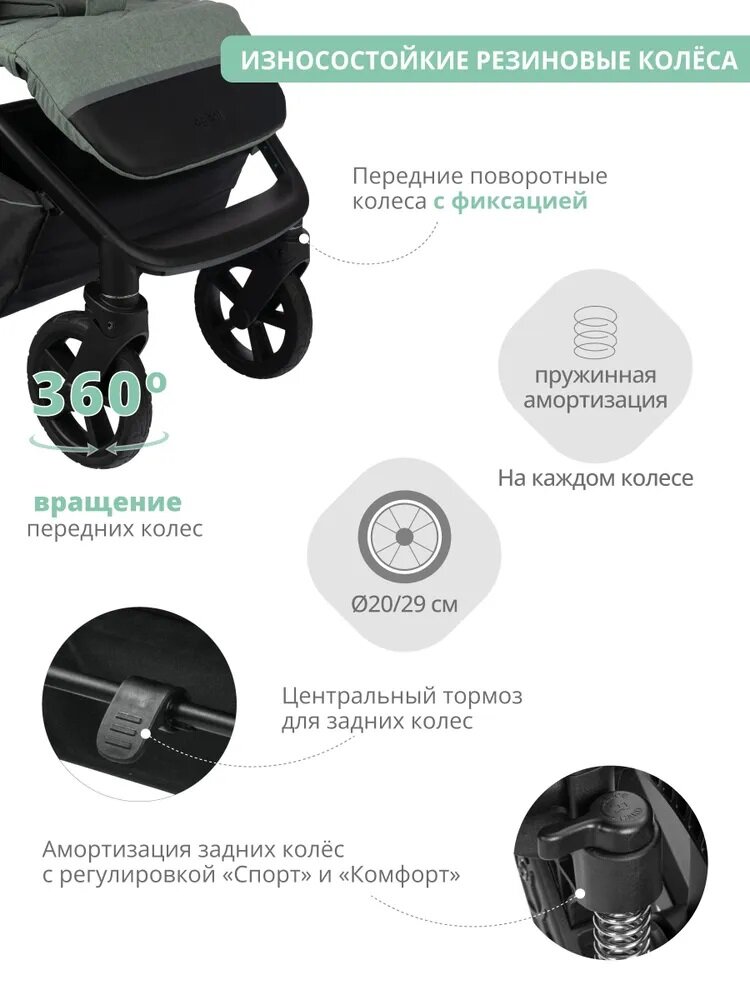 | Аксессуары в комплекте | антимоскитная сетка, бампер, держатель для бутылочки, капюшон, накидка на ноги, подстаканник, солнцезащитный козырек |