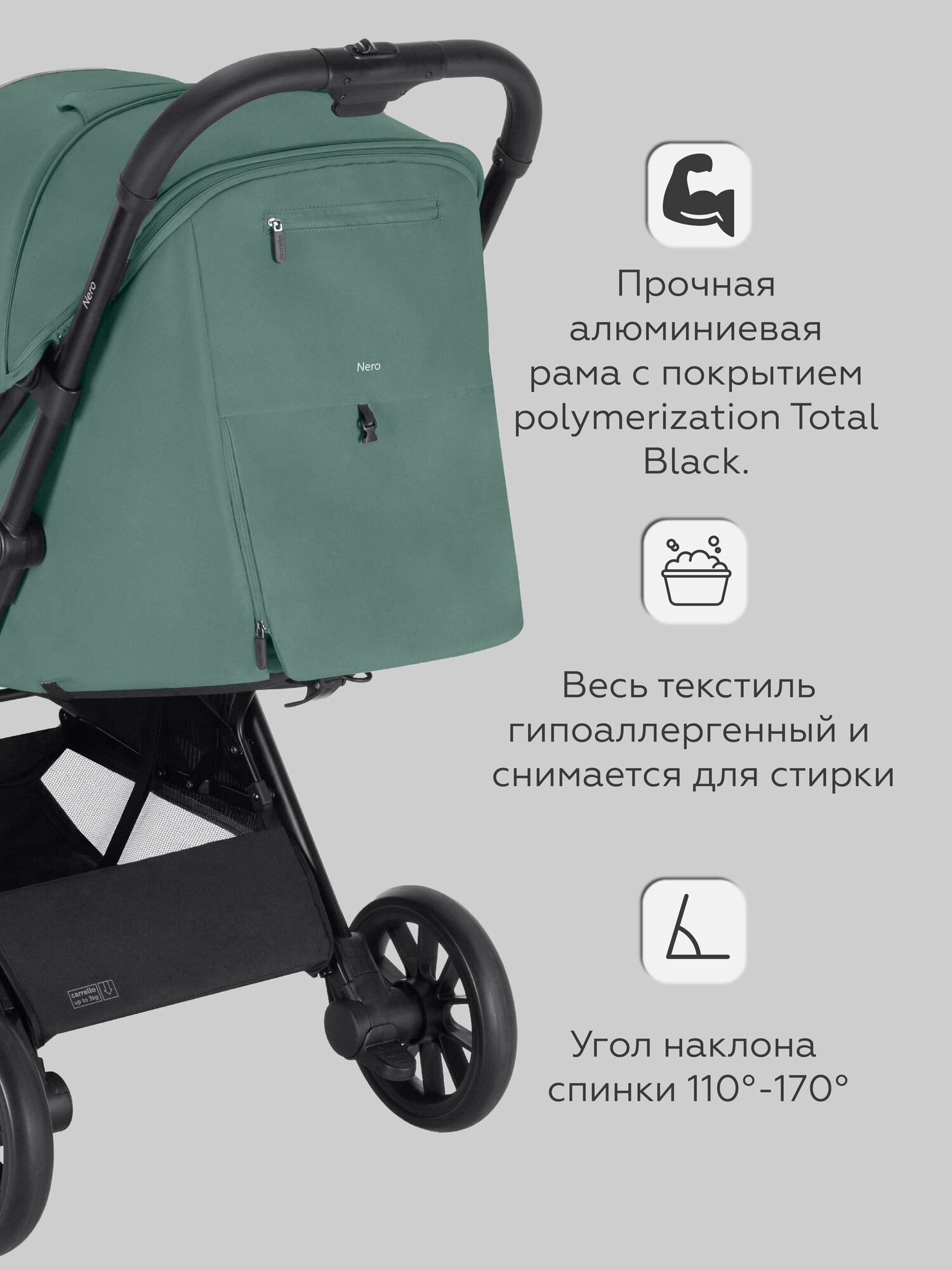 СохранитьКоляска прогулочная детская CARRELLO Nero, легкая универсальная коляска, зеленая интересное: