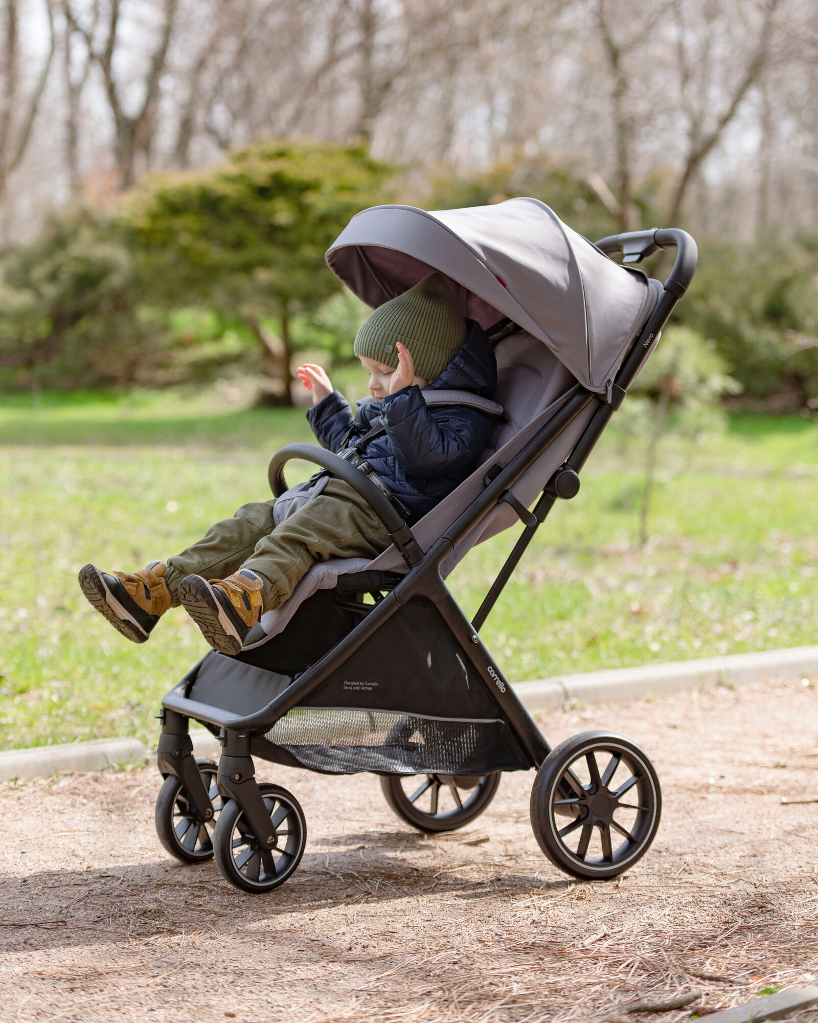 Коляска прогулочная детская CARRELLO Nero, легкая универсальная коляска, темно-серая