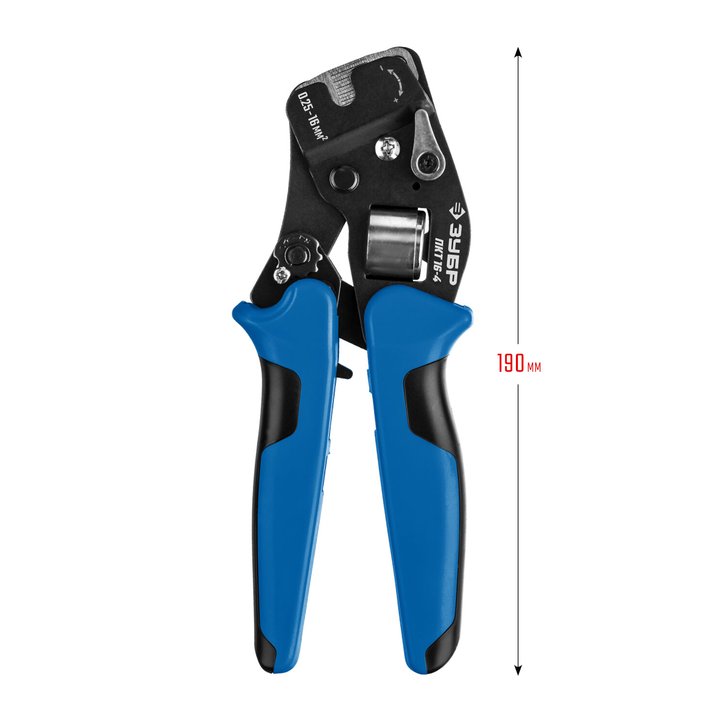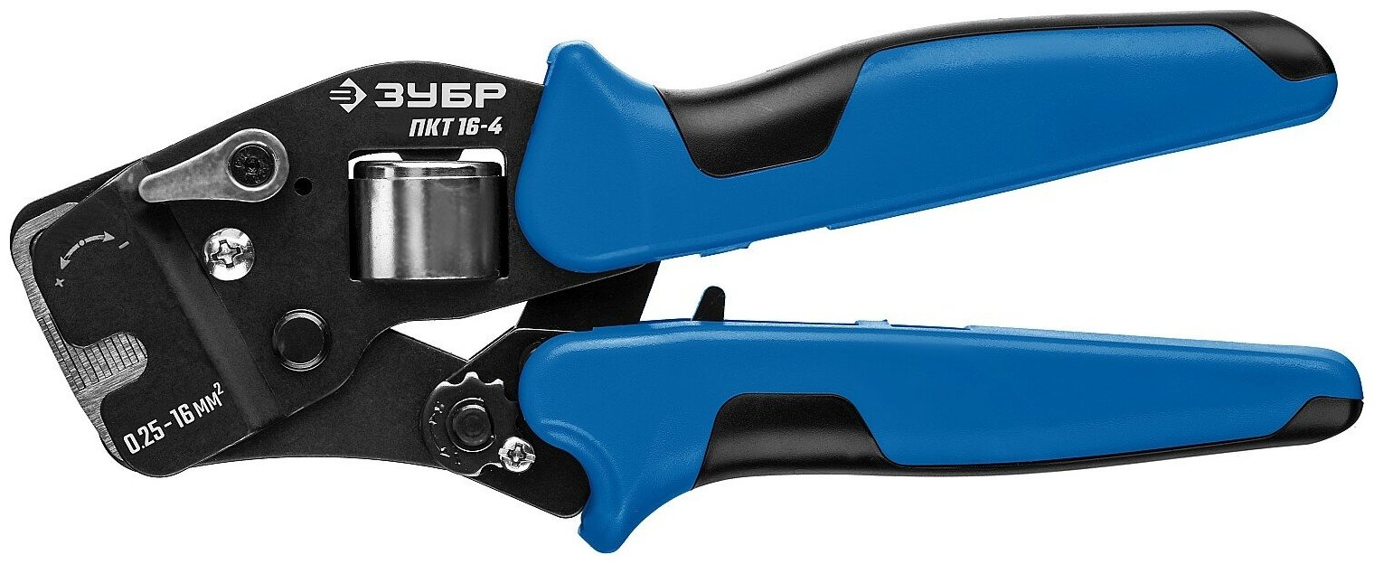 ЗУБР ПКТ-16-4 0.25-16мм2 с квадратным профилем для втулочных наконечников, Мультидиапазонные торцевые пресс-клещи, Профессионал (22694)