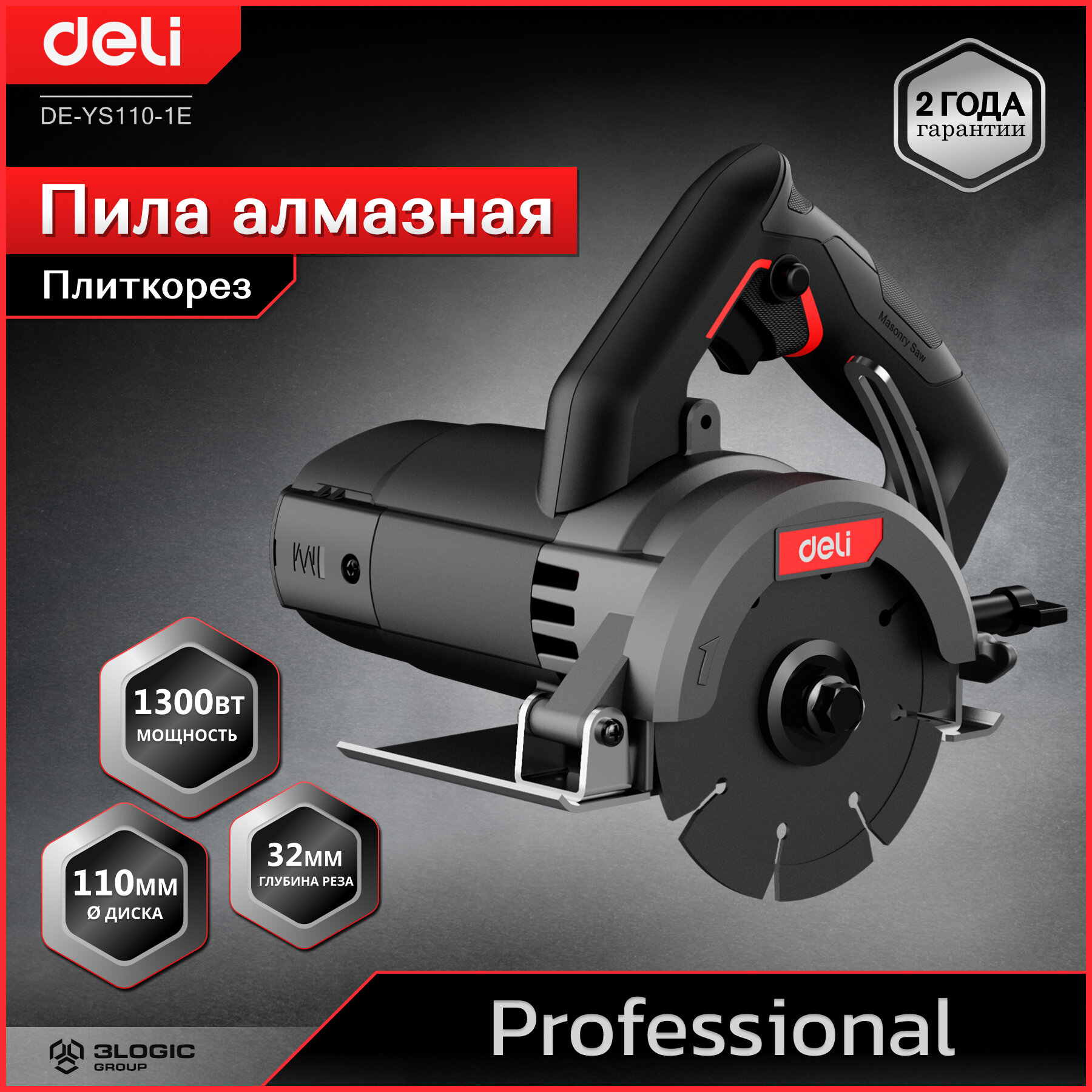 DELI Профессиональная алмазная пила (плиткорез) DE-YS110-1E (1300Вт, диск 110мм, глубина реза 32мм, 13000 об/мин) 134565 интересное: